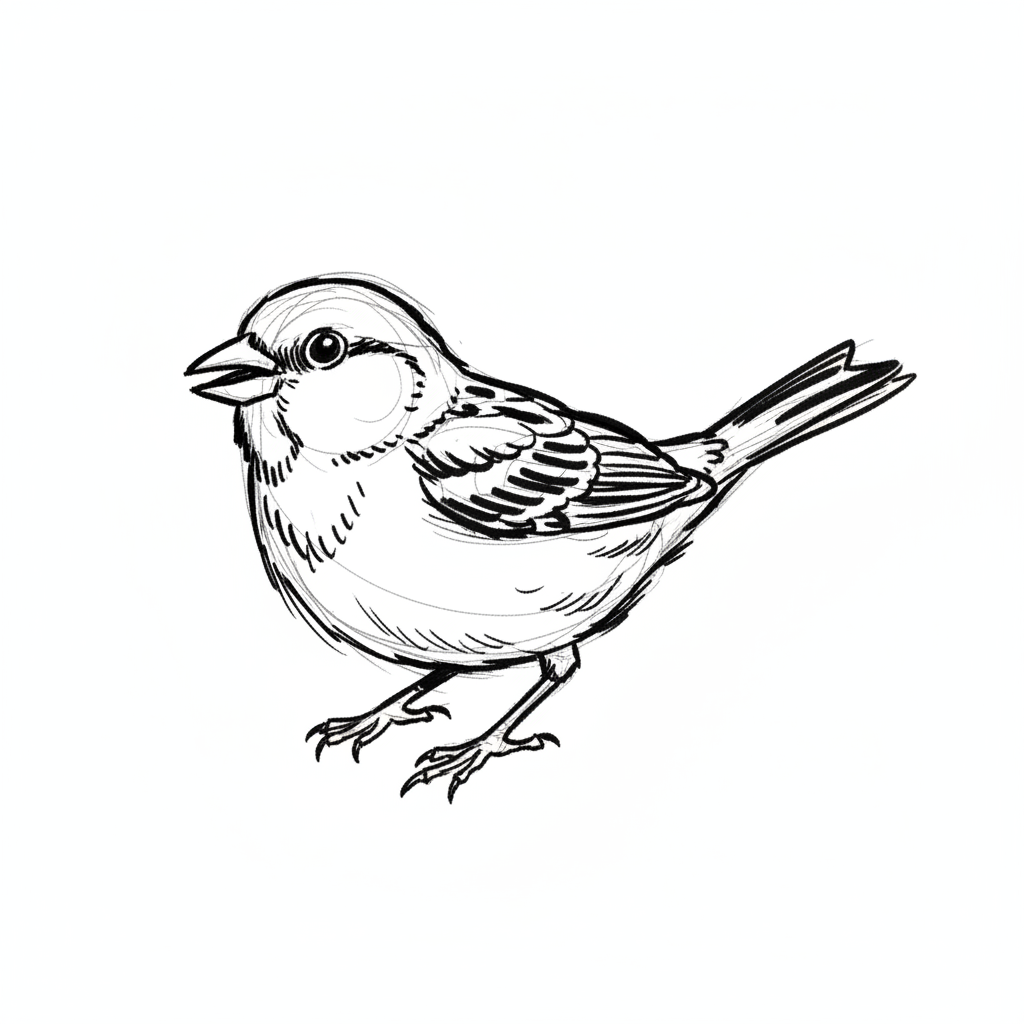 haussperling lineart-stil vogel zeichnung natur