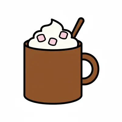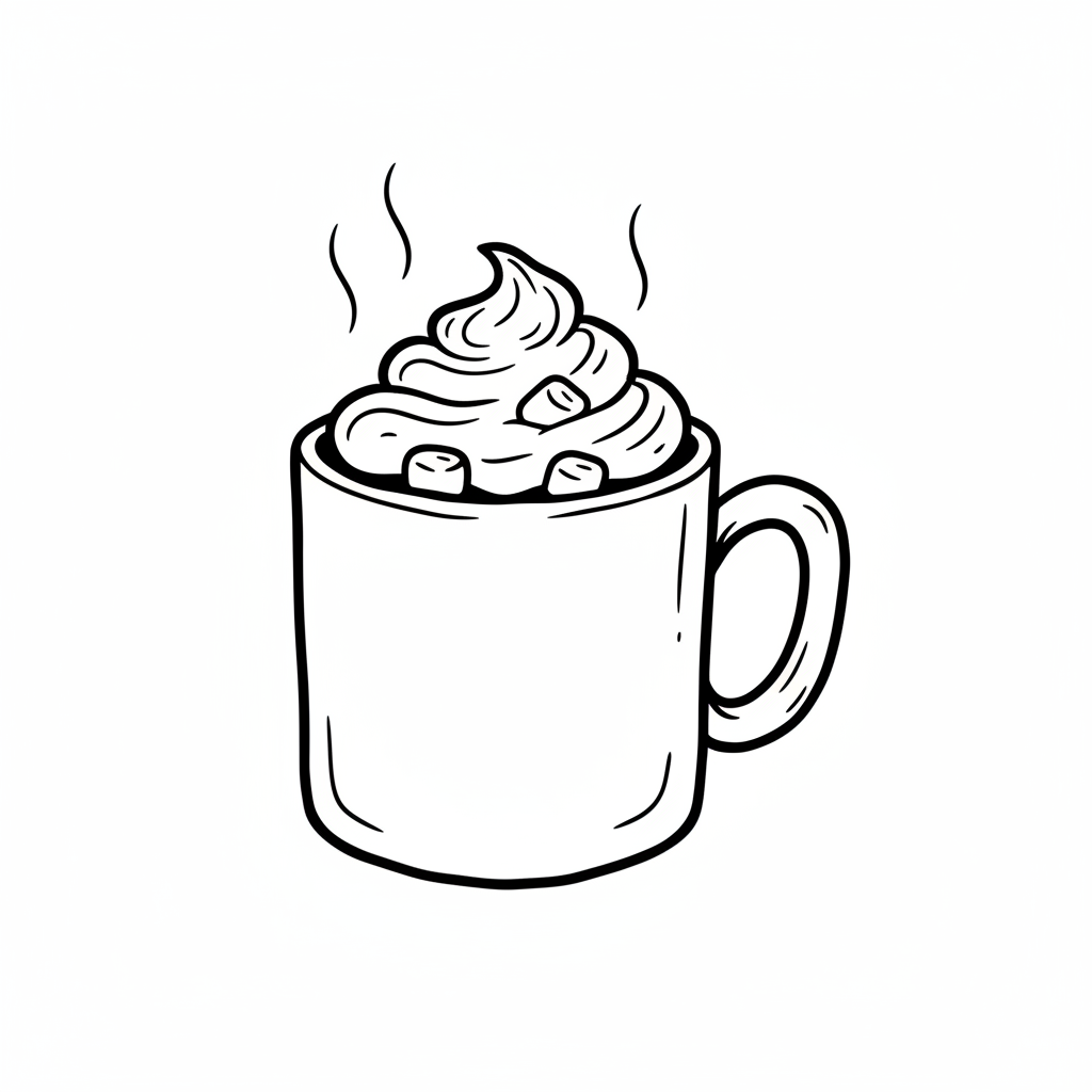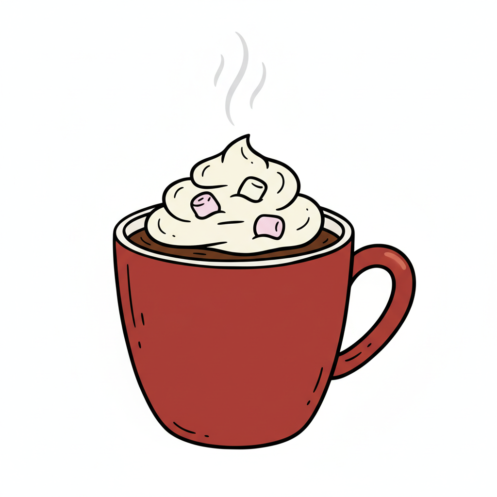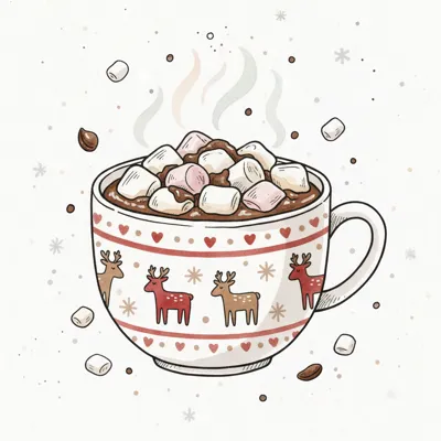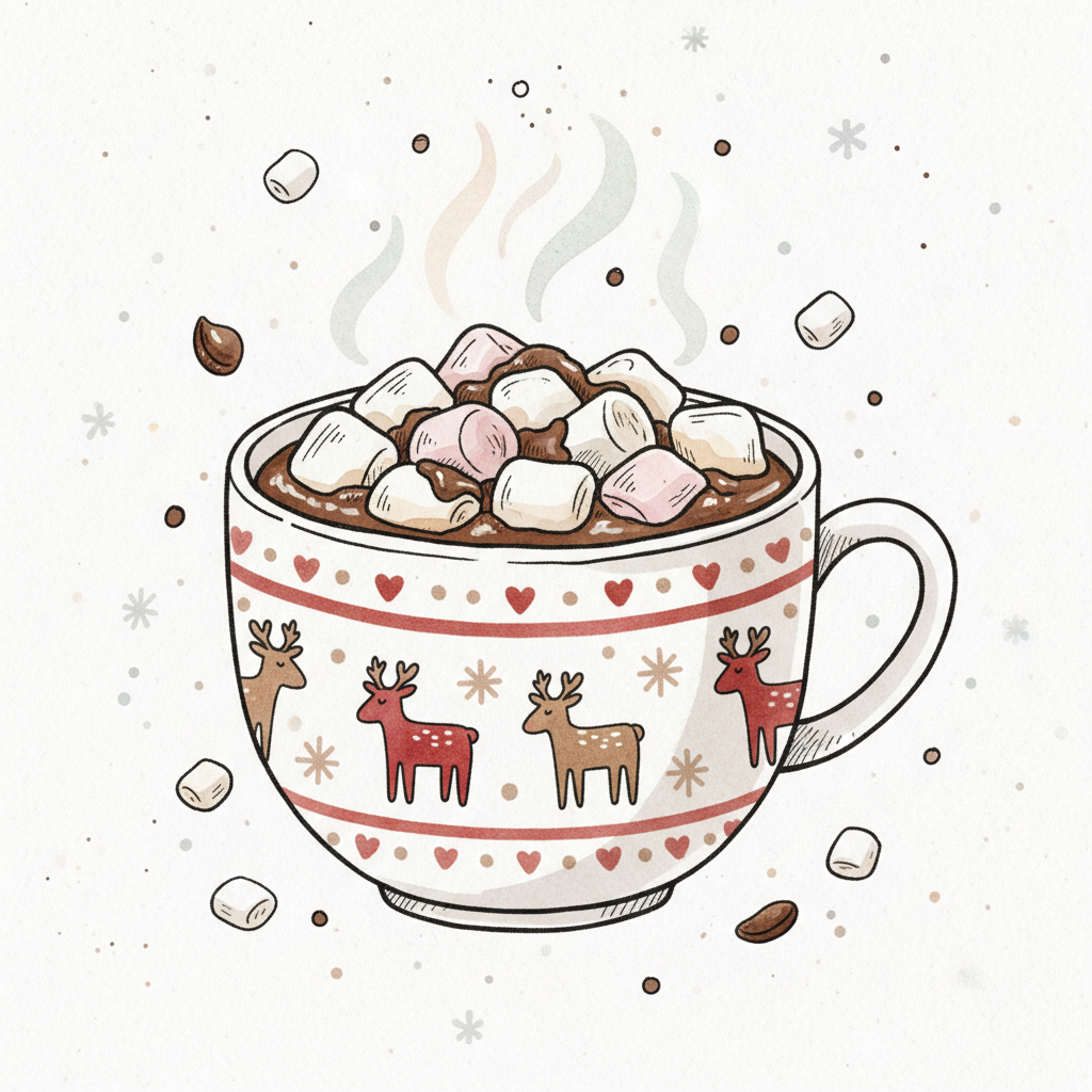 Eine Tasse heiße Schokolade mit Sahne und einem festlichen Design.