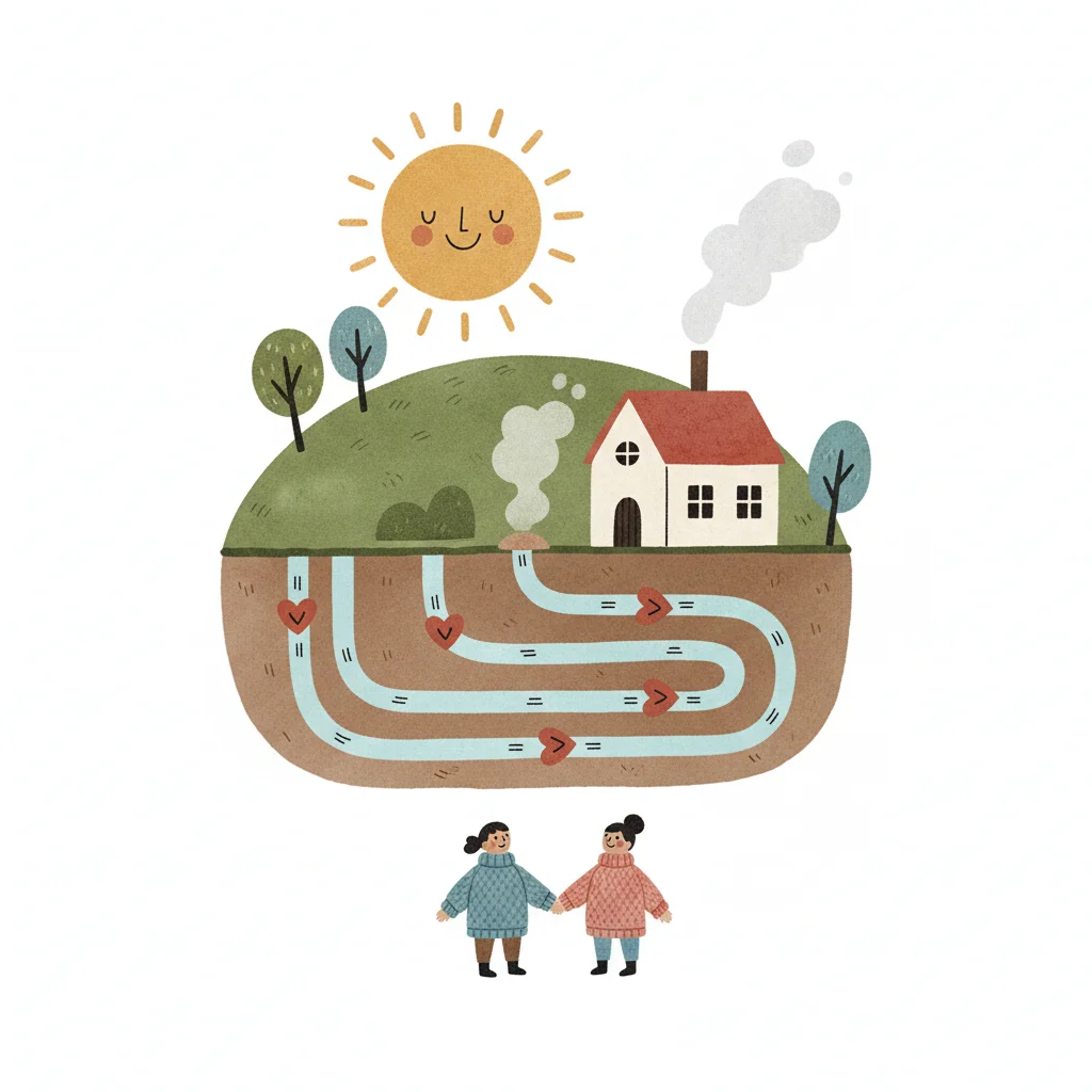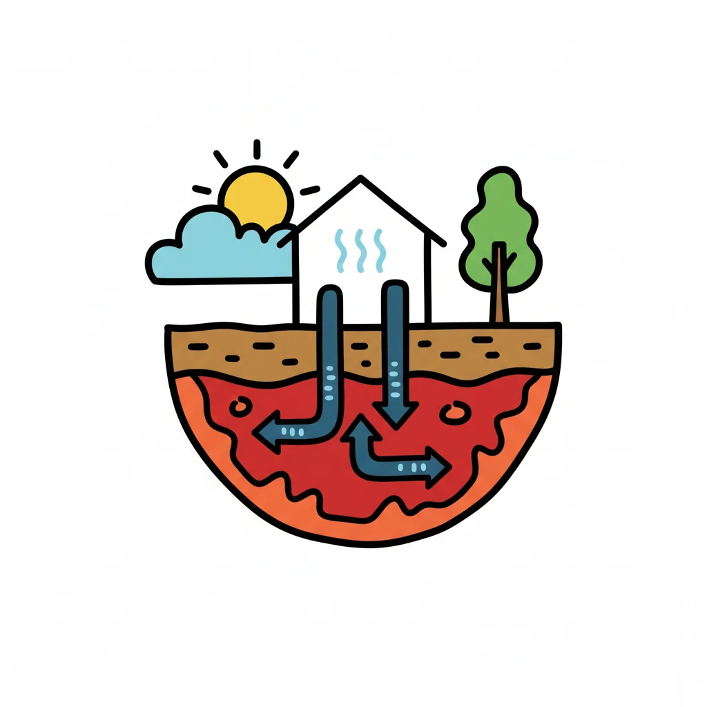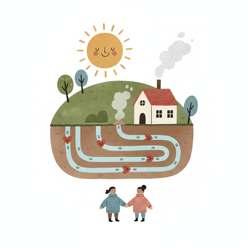Illustration einer geothermischen Heizung für ein Haus, das Erdwärme nutzt.