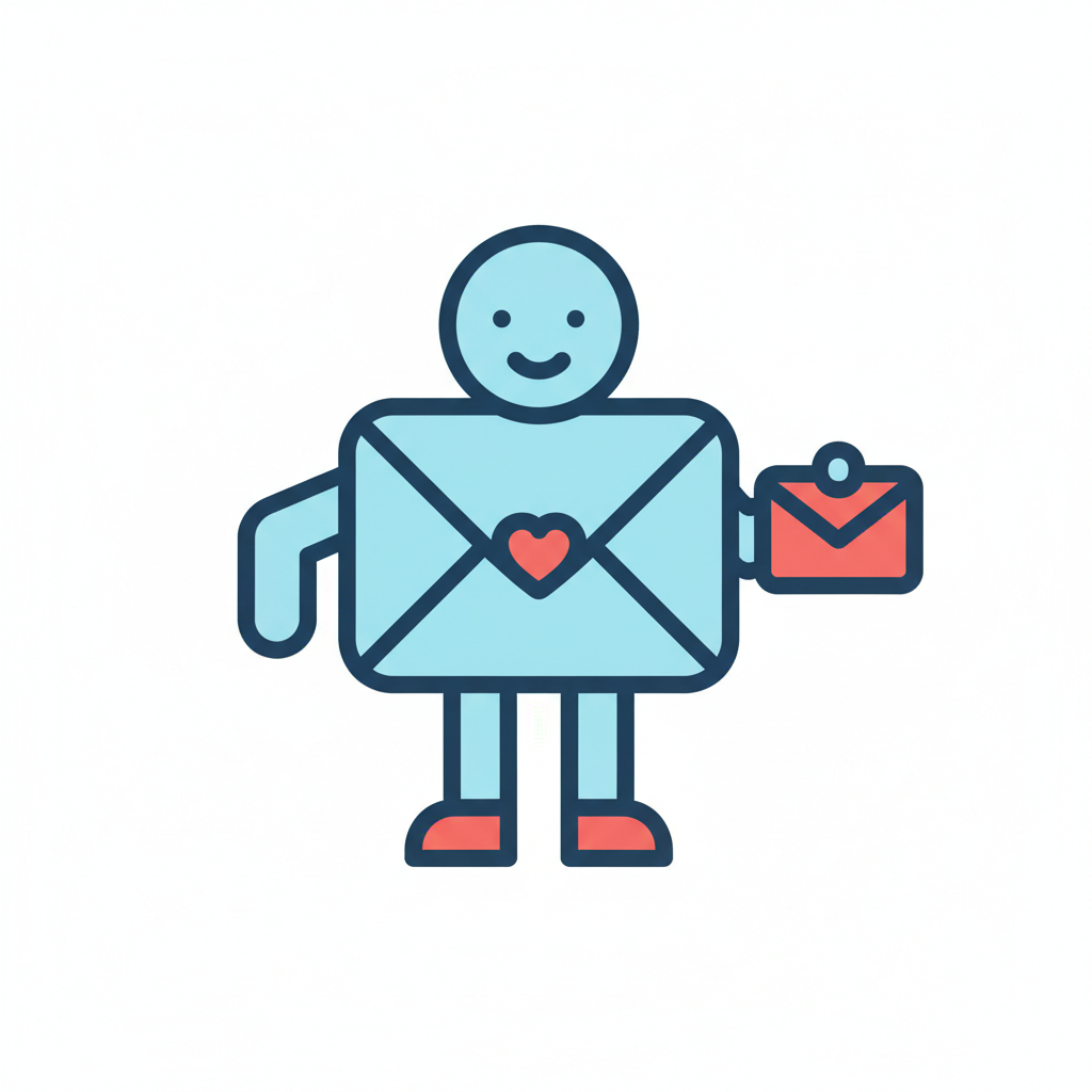 Ein fröhlicher Briefträger mit einem Herzen und einem Briefumschlag.