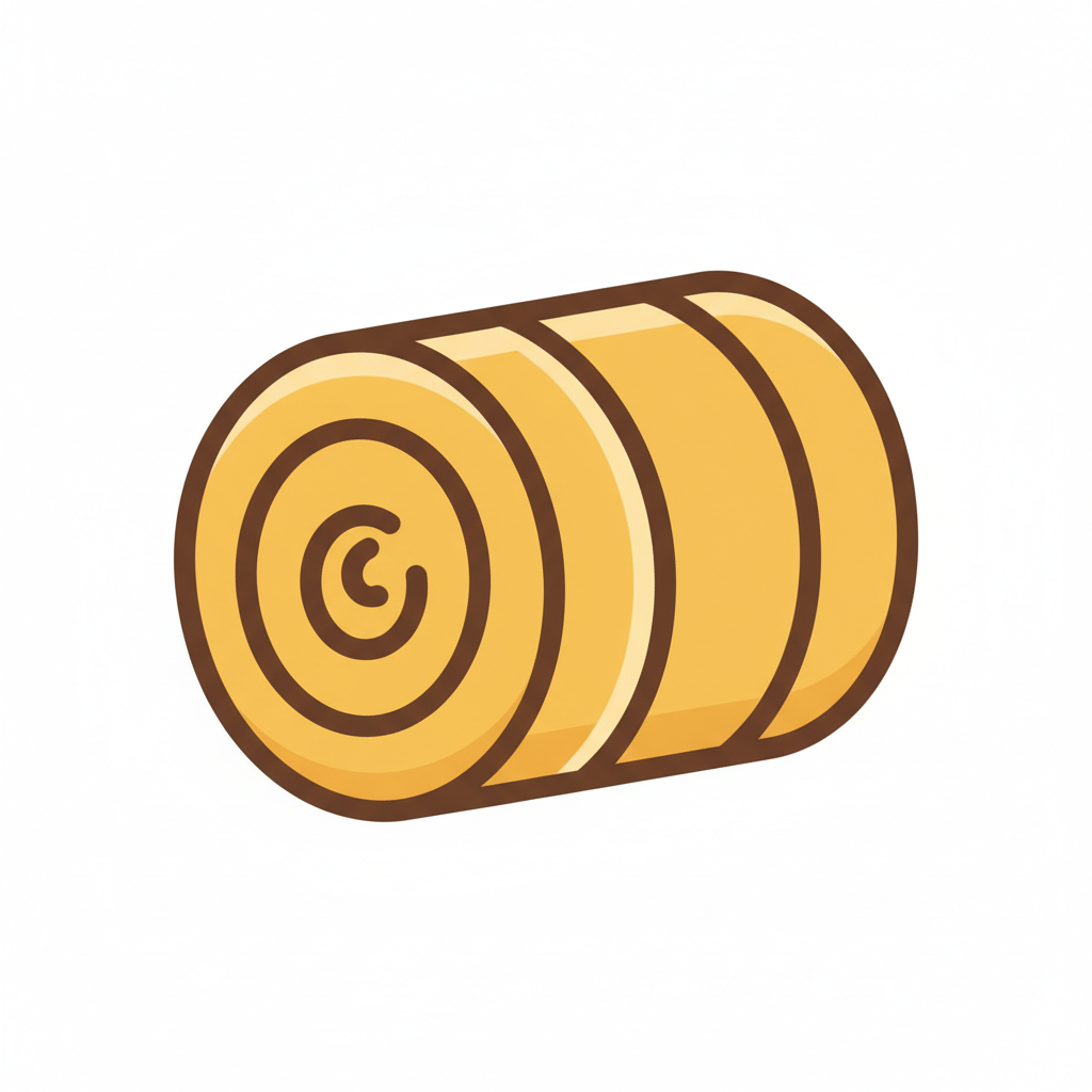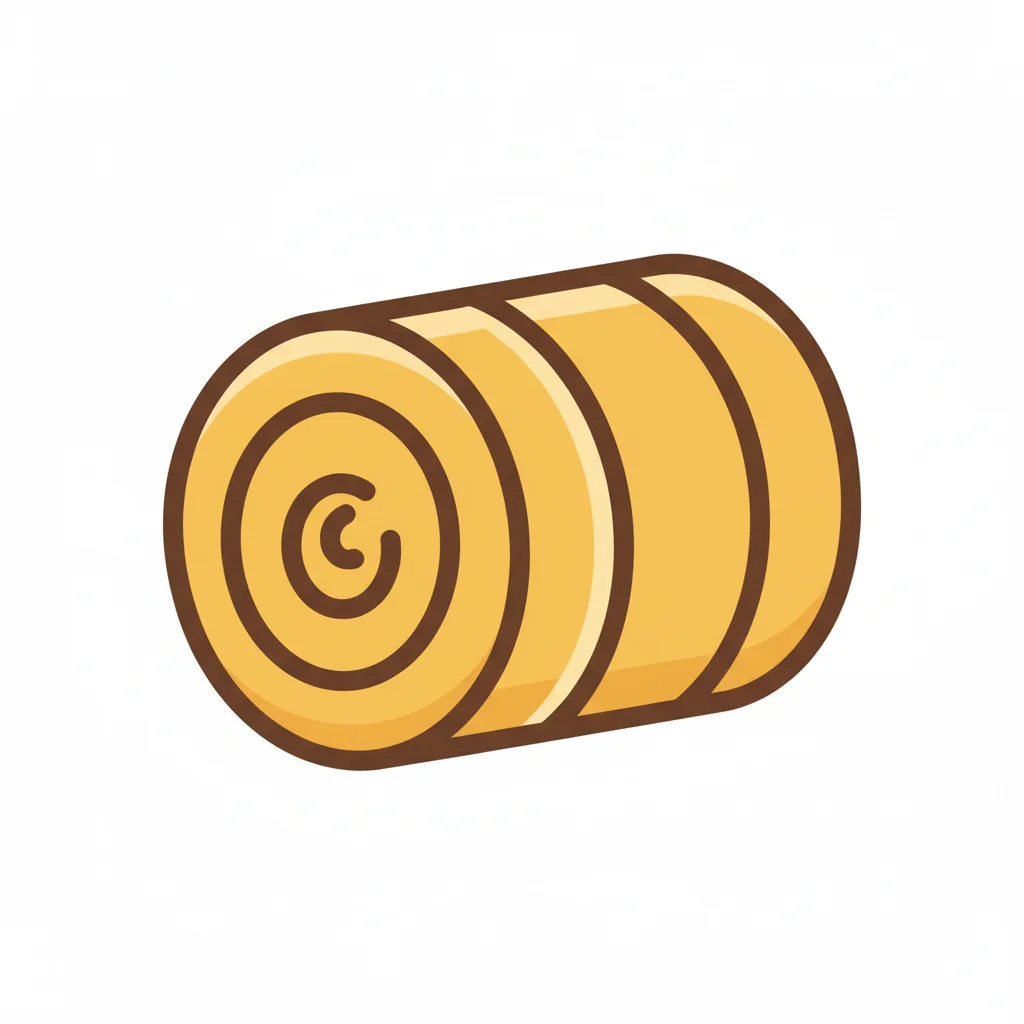 Ein gelber, zylindrischer Heuballen im Cartoon-Stil auf weißem Hintergrund.