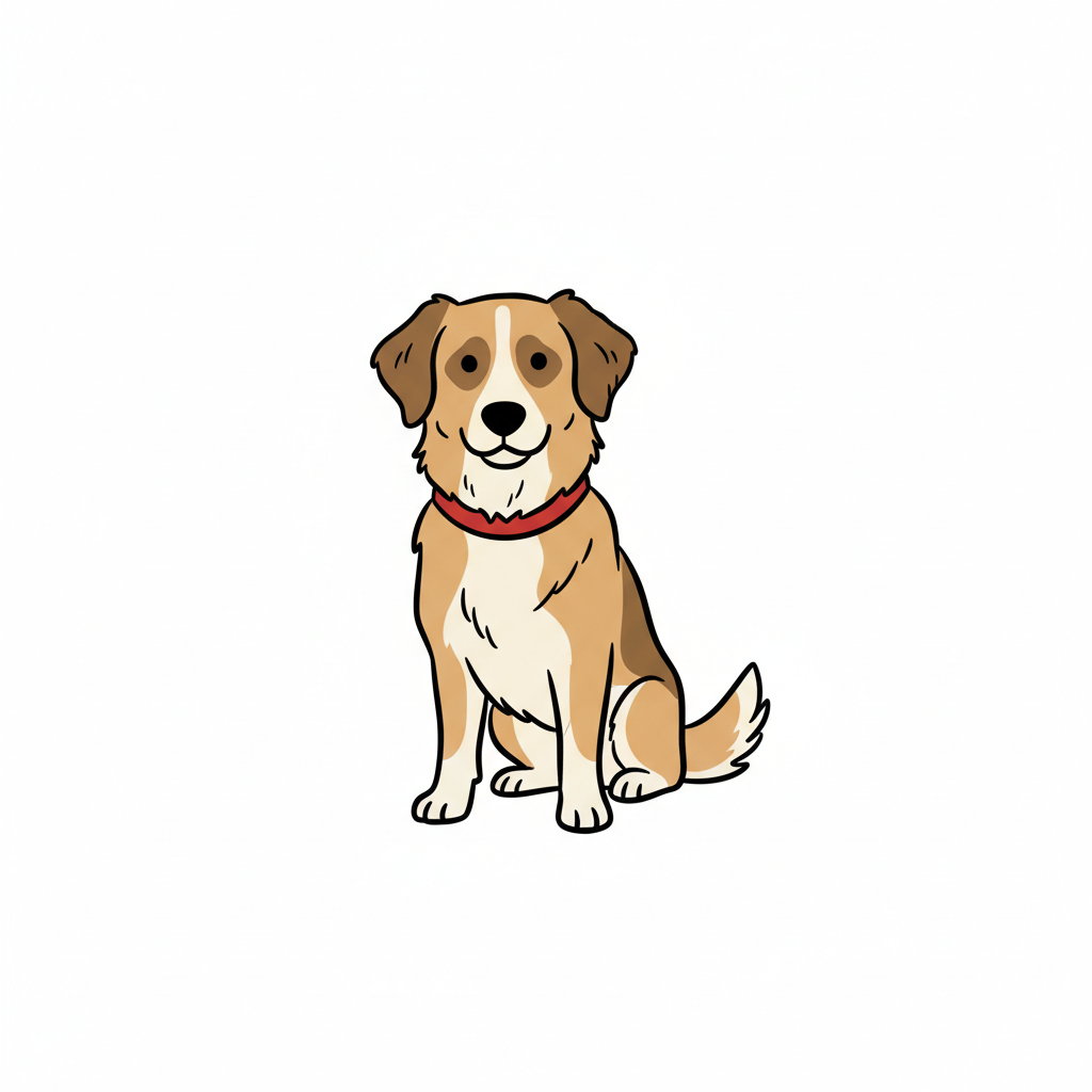 Süßer, cartoonartiger Hund sitzt mit einem freundlichen Blick.