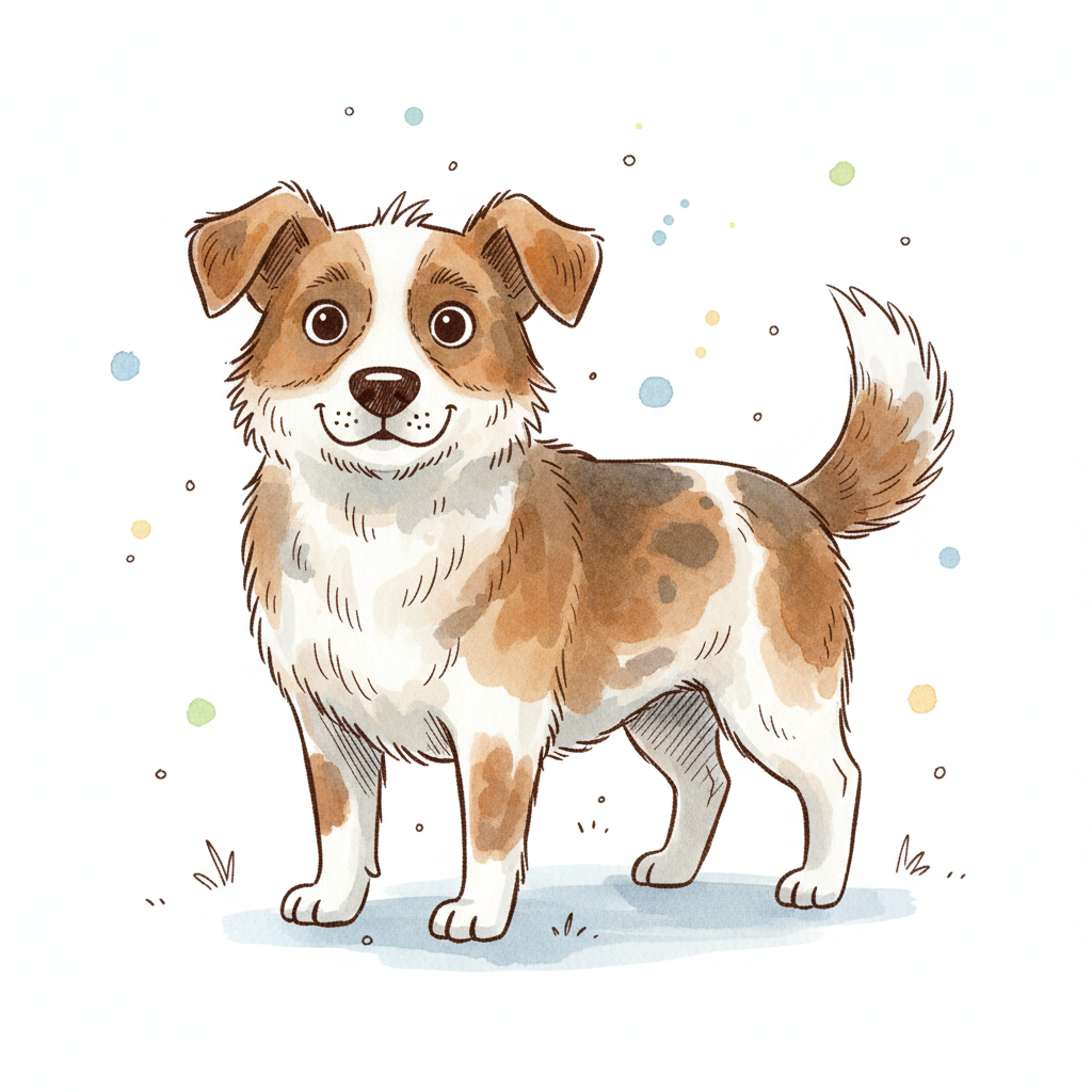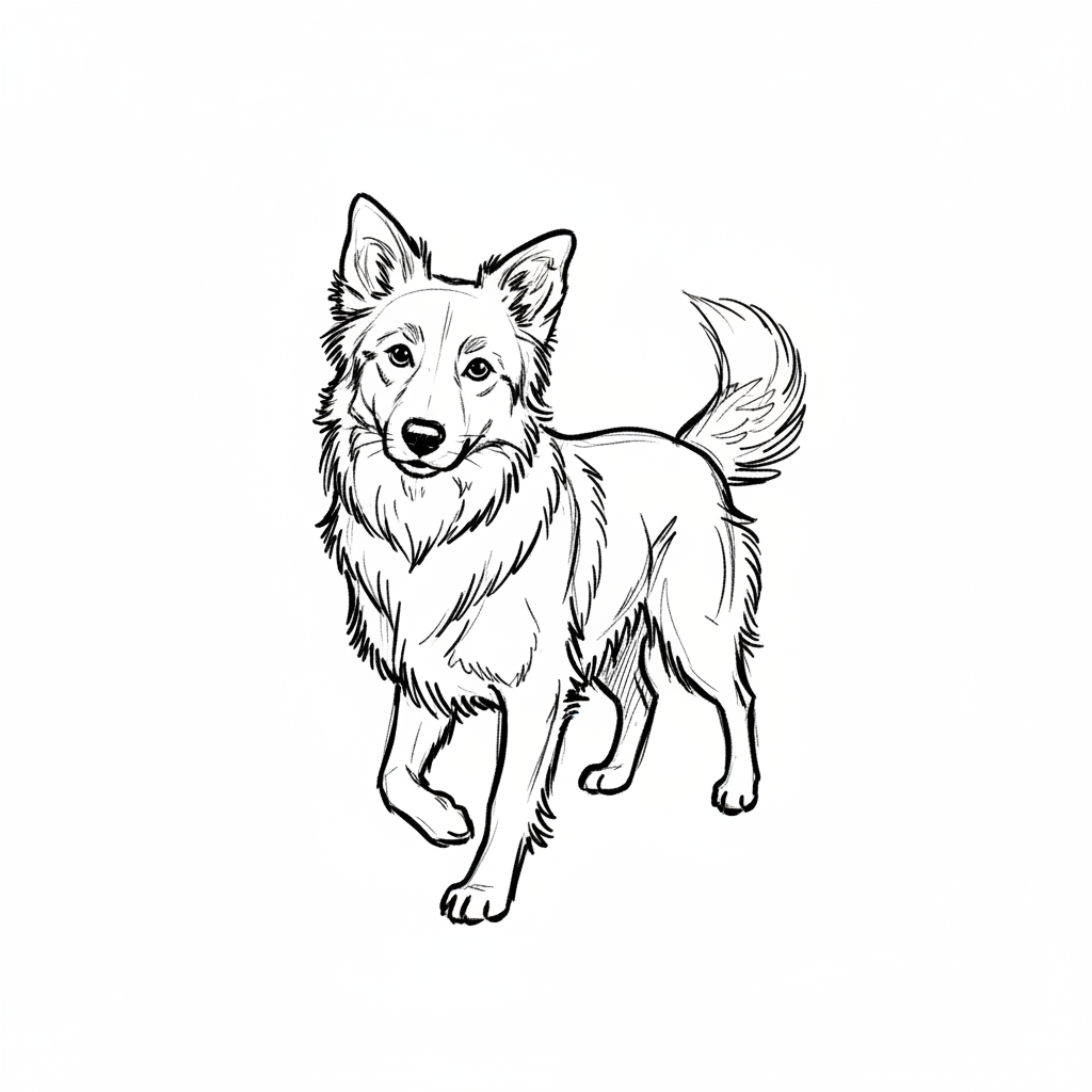 Ein skizzenhaft gezeichneter Hund, der freundlich auf den Betrachter zuläuft.