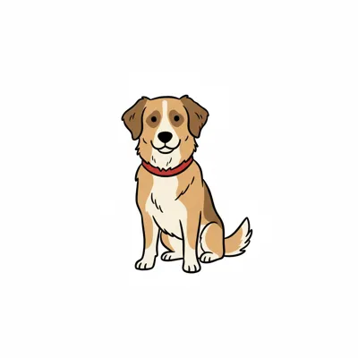 Ein cartoonhaftes Hundebild mit braunem Fell und rotem Halsband.