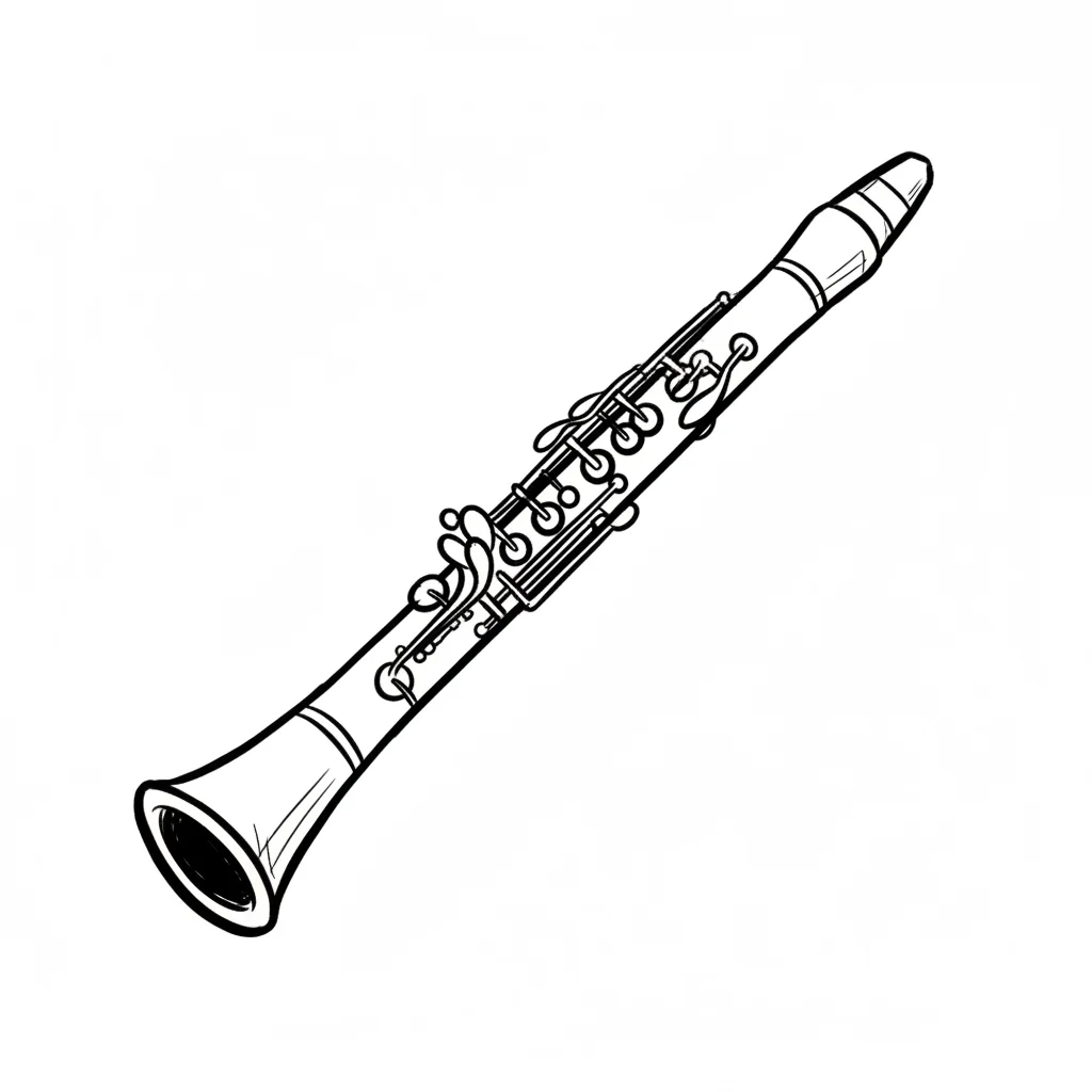 Schwarz-weiße Strichzeichnung einer Klarinette, einem Holzblasinstrument.