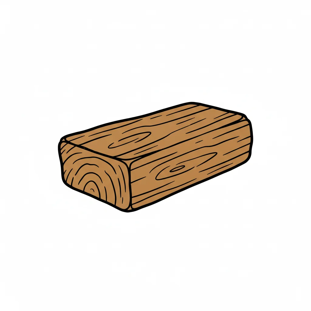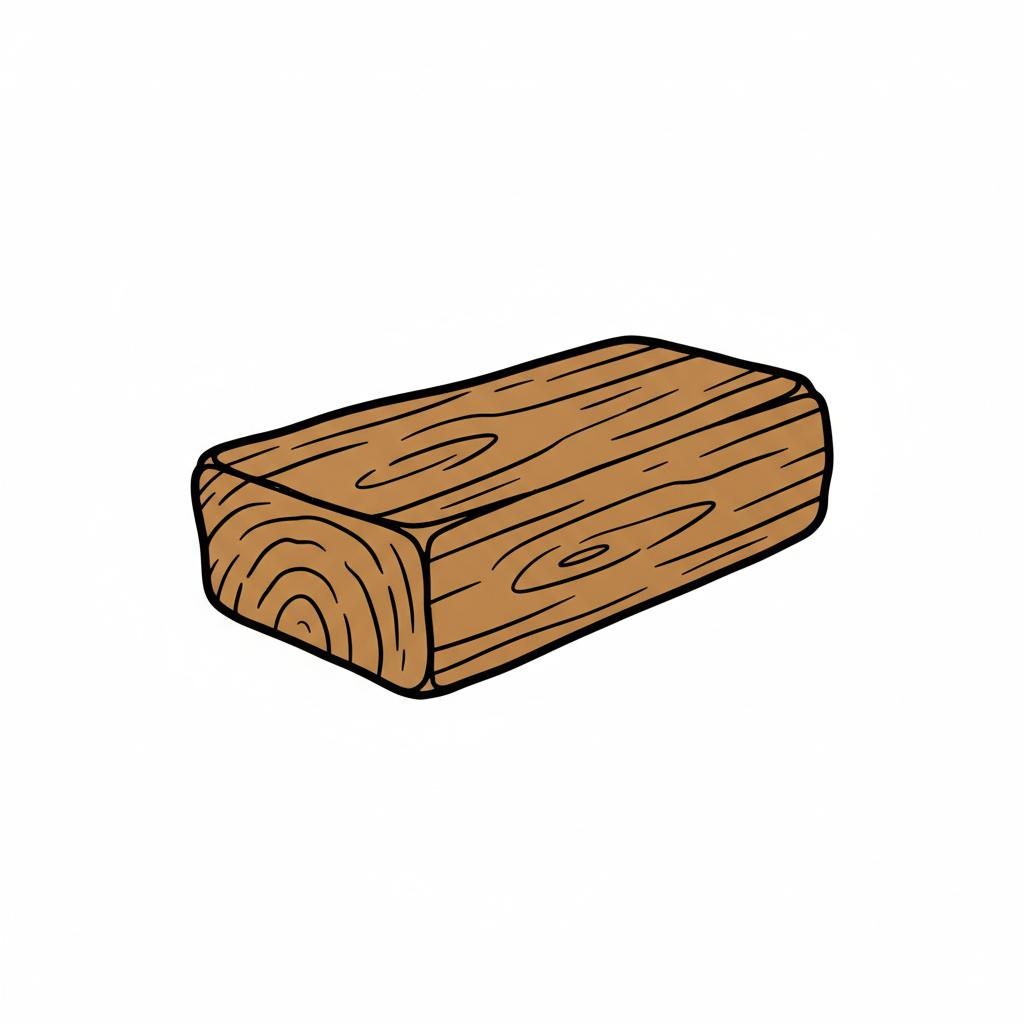Braunes Holzstück mit Maserung im Cartoon-Stil auf weißem Hintergrund.