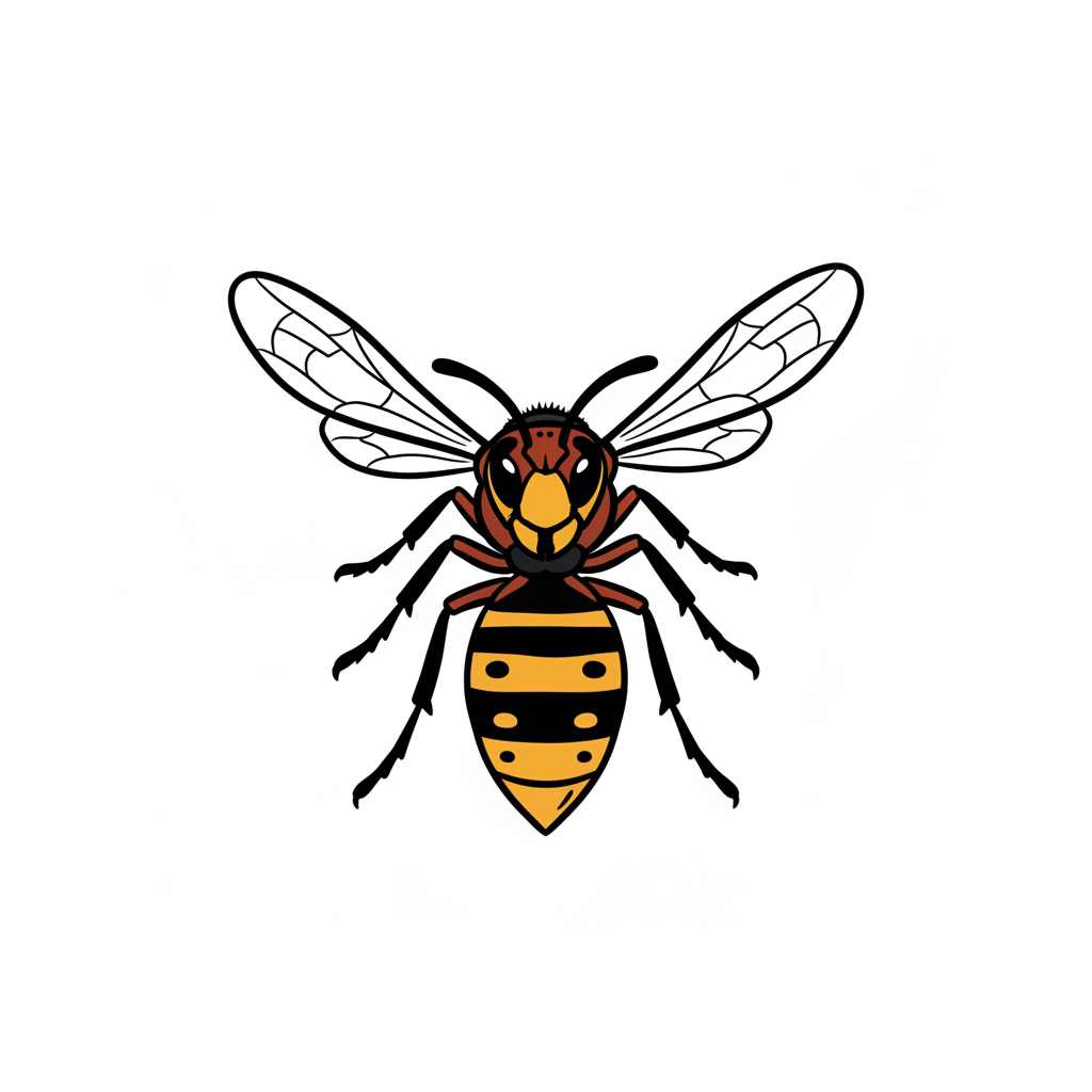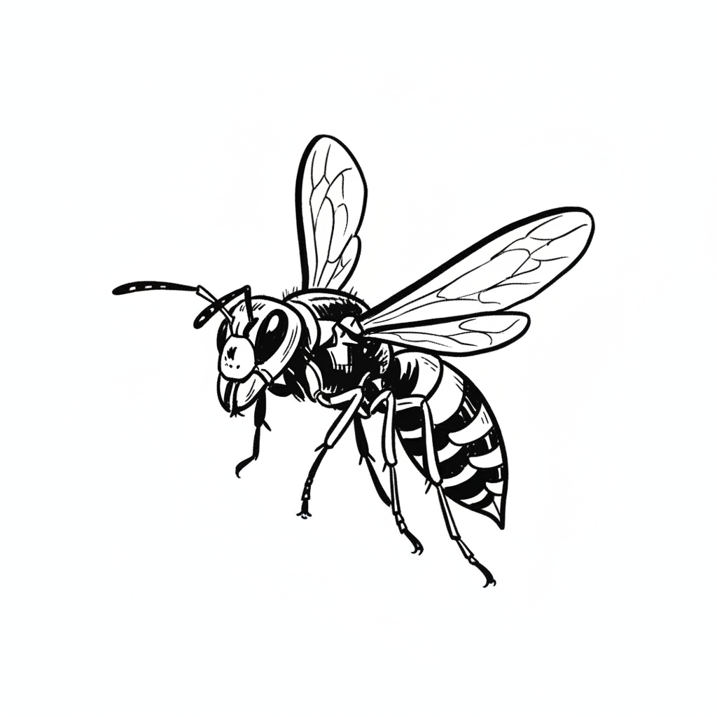 Einfarbige Darstellung einer Biene mit klaren Details und Farben.