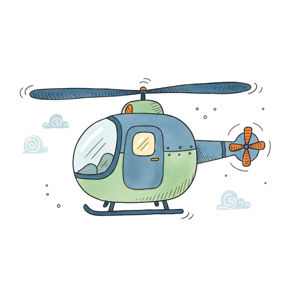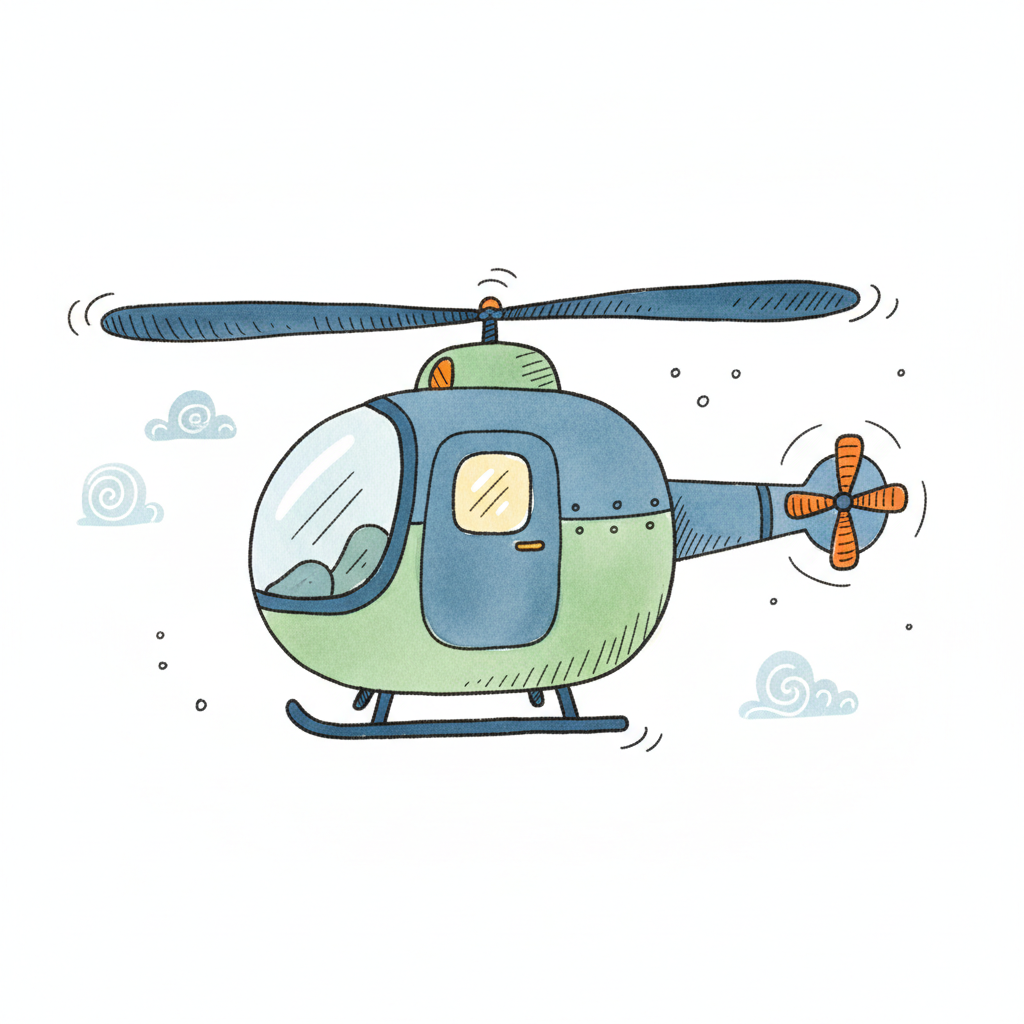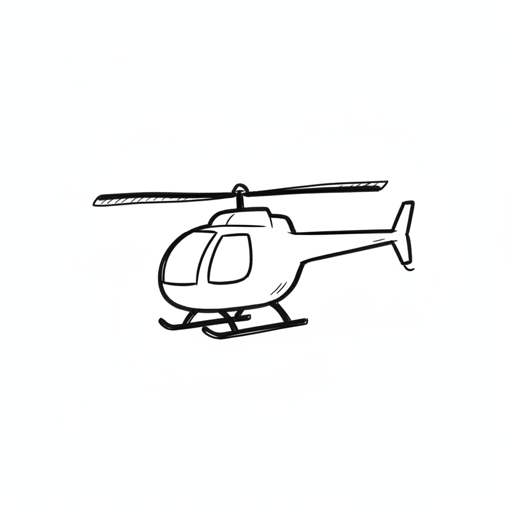 Ein skizzenhaft gezeichneter Hubschrauber in einfacher Form.