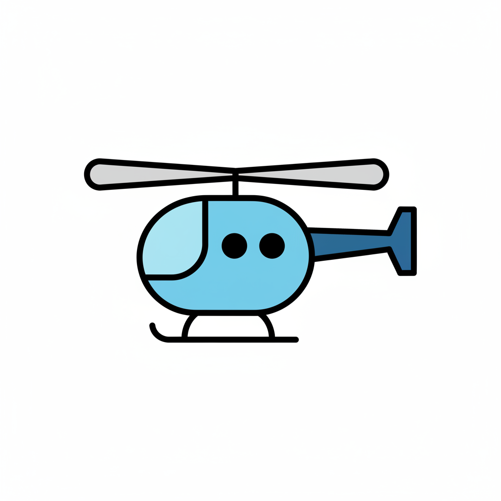 Ein einfaches, cartoonhaftes Bild eines blauen Hubschraubers.