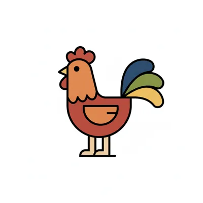 Buntes, stilisiertes Huhn mit farbenfrohem Federkleid.