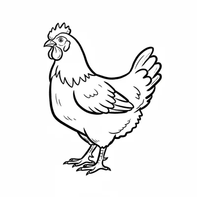 Eine stilisierte Henne steht aufrecht in Schwarz-Weiß.