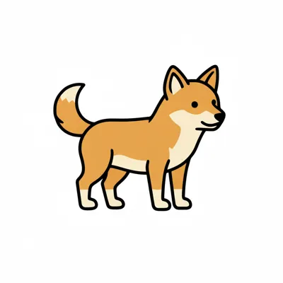 Ein cartoonhaftes Bild eines orangefarbenen Hundes mit aufmerksamen Blick.