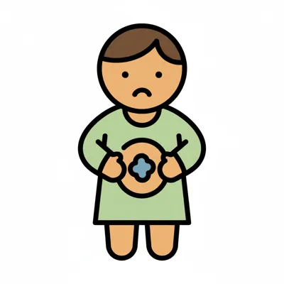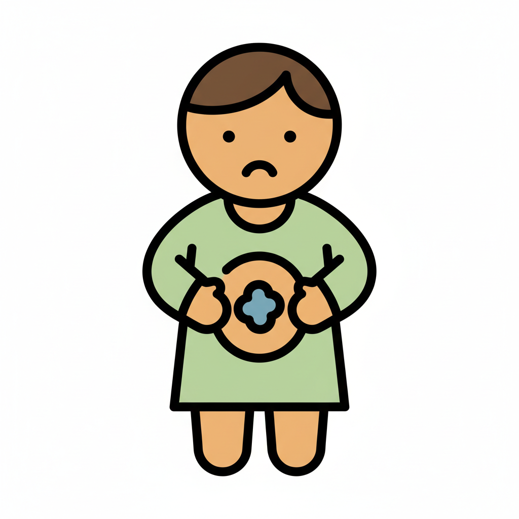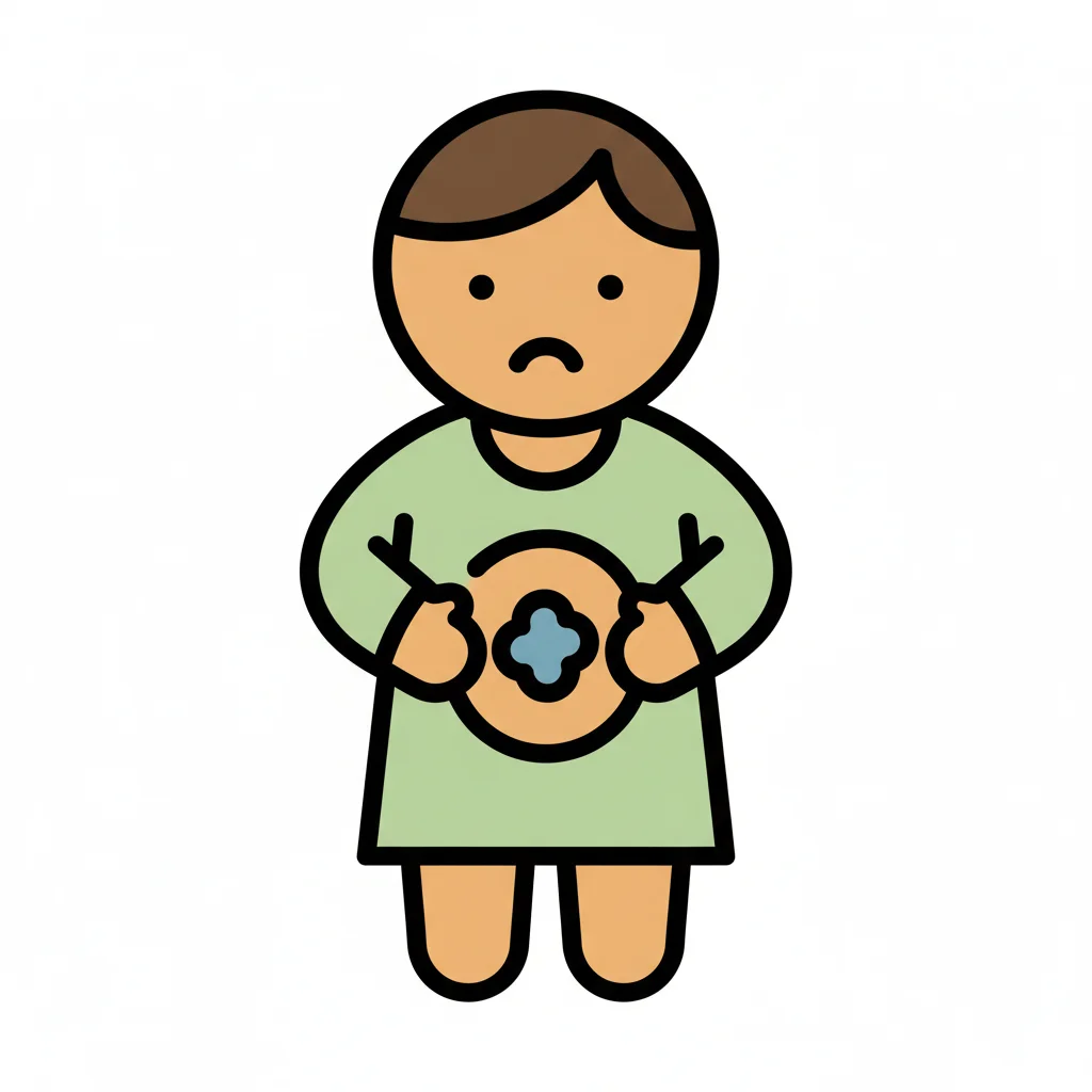 Person zeigt auf ihren Bauch und sieht besorgt aus.