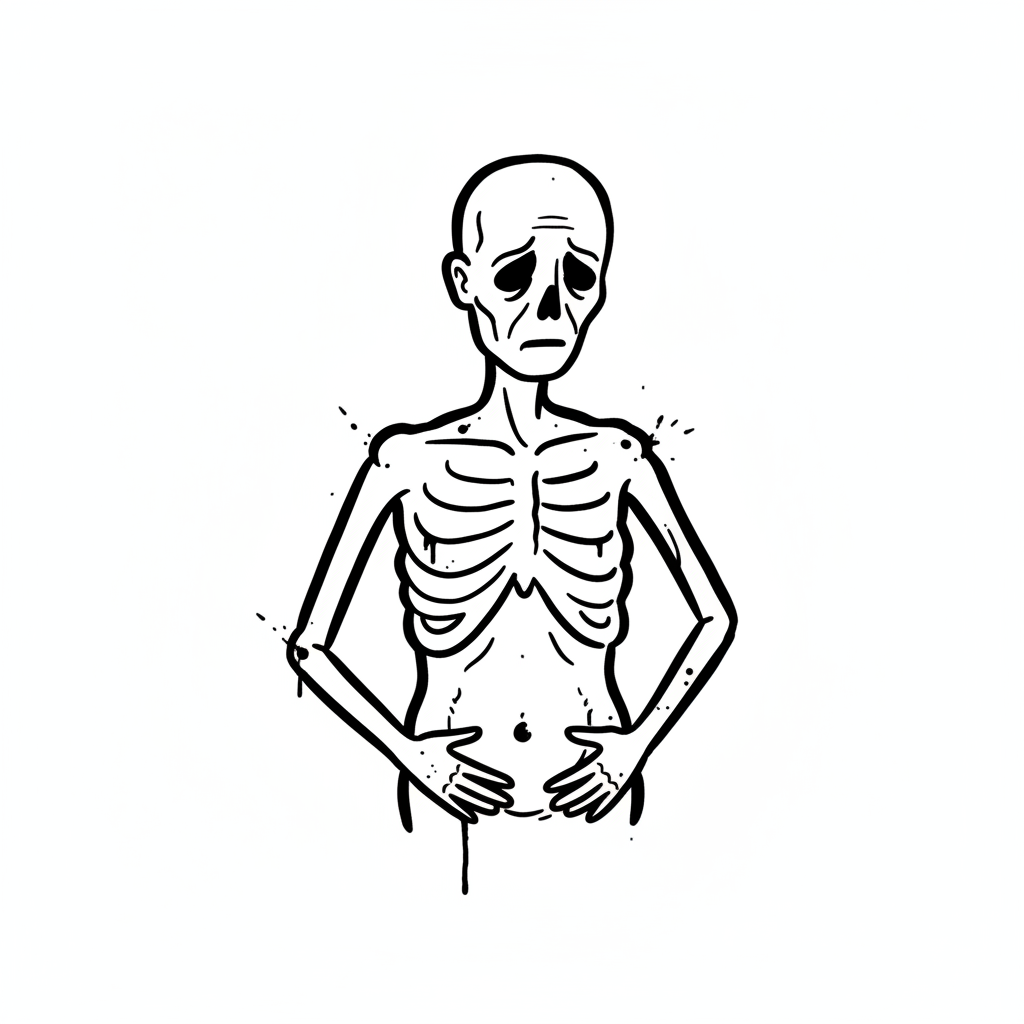 Ein verhungerter Mensch schreit vor Verzweiflung und Angst.