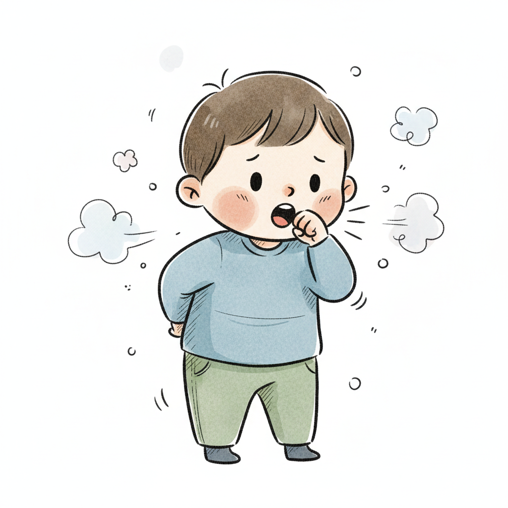 Ein kleiner Junge hustet und sieht besorgt aus.
