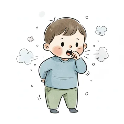 Ein kleiner Junge hustet und wirkt darum besorgt.