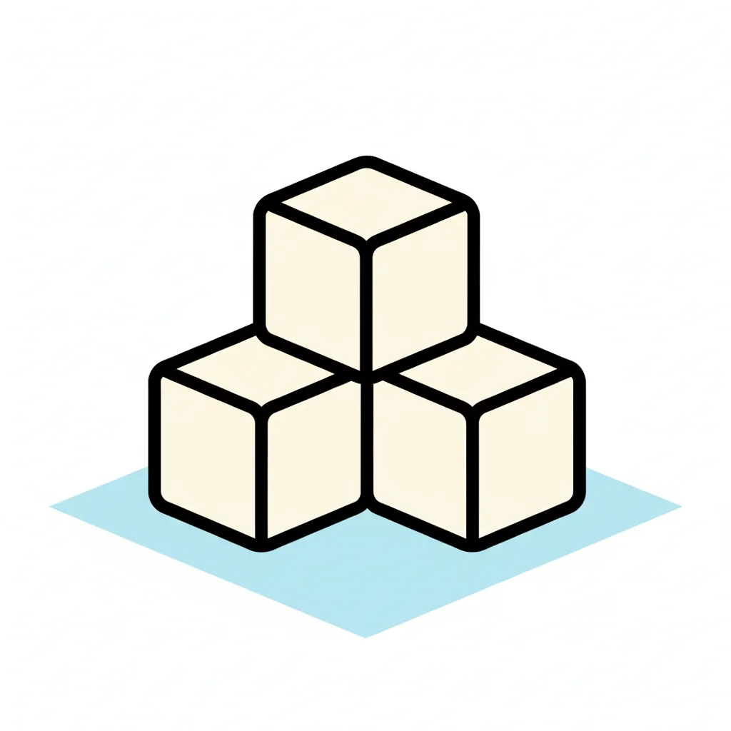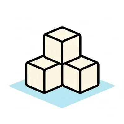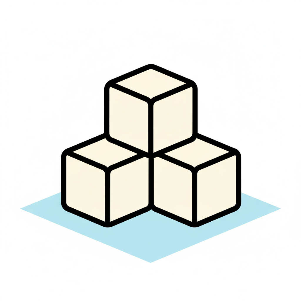 Drei helle, umrissene Würfel, gestapelt auf einer blauen Fläche, im Stil eines Icons.