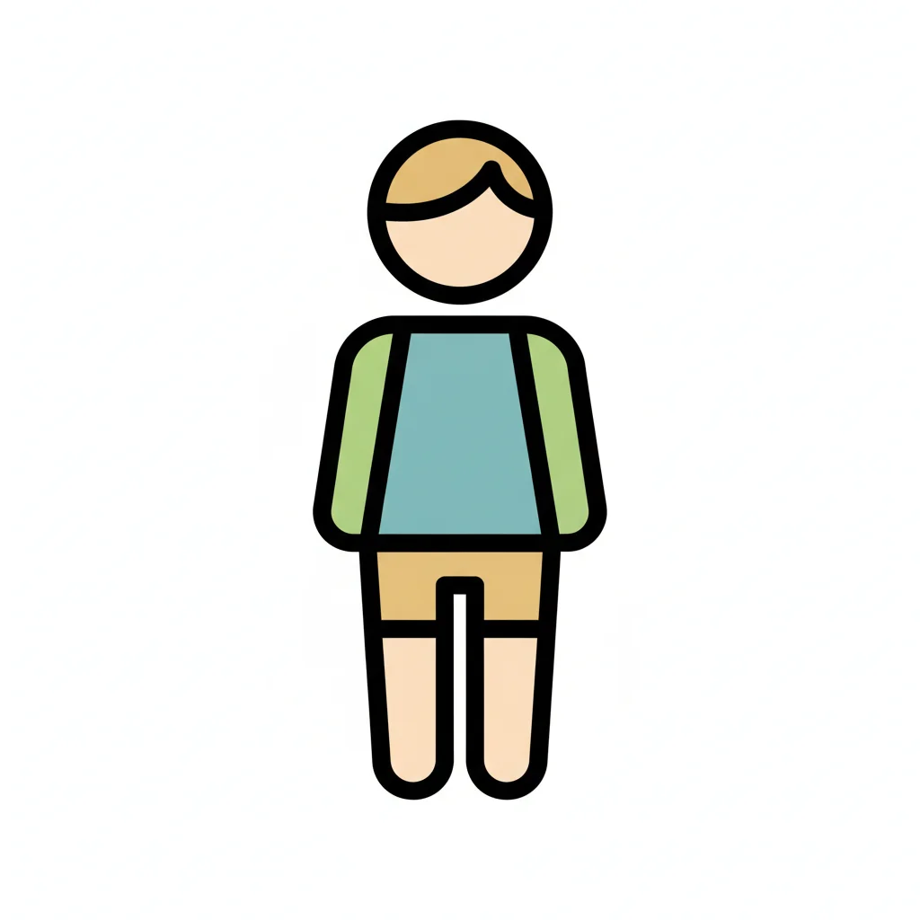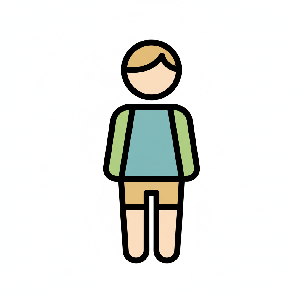 Minimalistische Vektorillustration im flächigen Icon-Stil. Sehr einfache, reduzierte Formen mit klaren, dicken Konturen und wenigen Details. Flächige Farben ohne Verläufe oder Texturen, ruhige Farbpalette, klare Silhouette und gut lesbare, freundliche Figur. Moderne, kindgerechte Lernillustration im Stil einfacher Piktogramme, sauberer Hintergrund und übersichtliche Komposition. Hoher Kontrast, isoliert auf weißem Hintergrund. WICHTIG: KEIN TEXT im Bild. Hintergrund: Rein weiß.