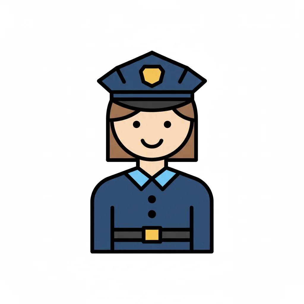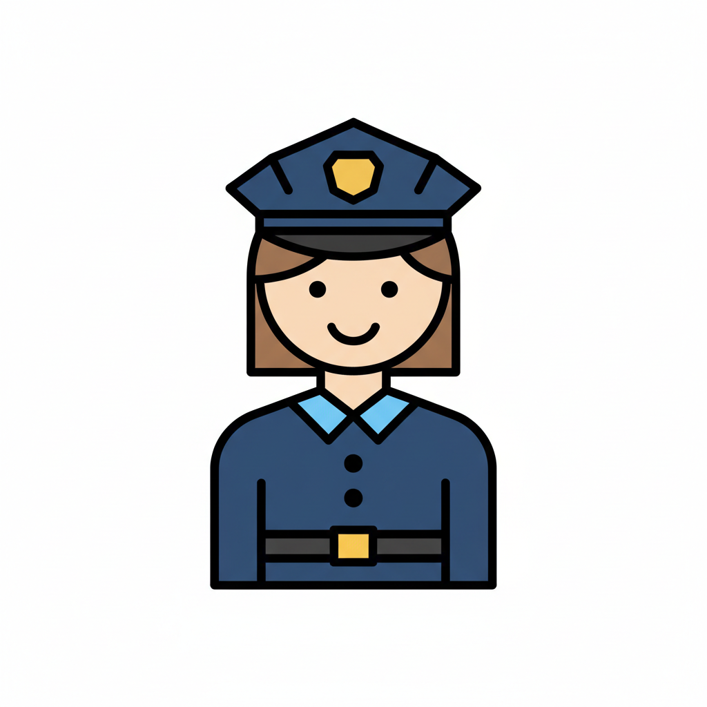 Illustration einer lächelnden Polizistin in blauer Uniform und Mütze.