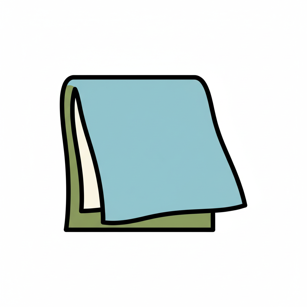 Stilisierte, gefaltete blaue Lage, könnte ein Handtuch oder Papier sein, auf weißem Hintergrund.