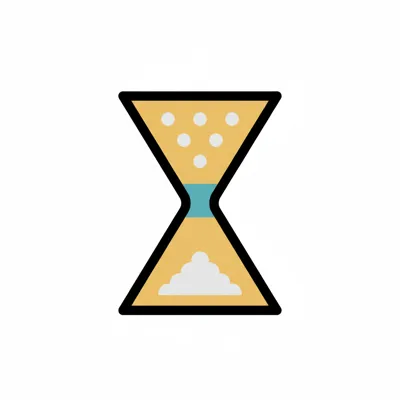 Stilisierte Sanduhr-Ikone mit fallendem Sand, die Zeit und Geduld symbolisiert.