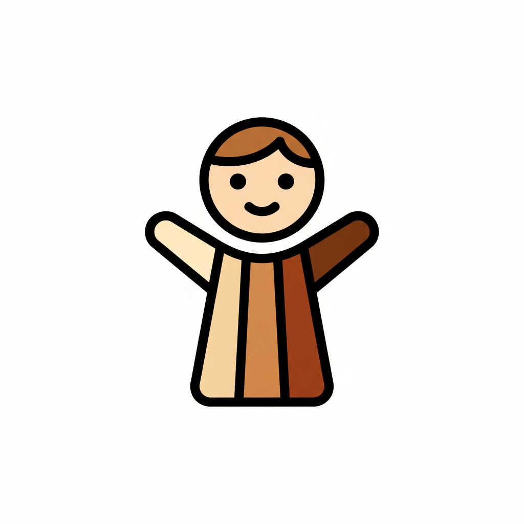 Minimalistische Vektorillustration im flächigen Icon-Stil. Sehr einfache, reduzierte Formen mit klaren, dicken Konturen und wenigen Details. Flächige Farben ohne Verläufe oder Texturen, ruhige Farbpalette, klare Silhouette und gut lesbare, freundliche Figur. Moderne, kindgerechte Lernillustration im Stil einfacher Piktogramme, sauberer Hintergrund und übersichtliche Komposition. Hoher Kontrast, isoliert auf weißem Hintergrund. WICHTIG: KEIN TEXT im Bild. Hintergrund: Rein weiß.