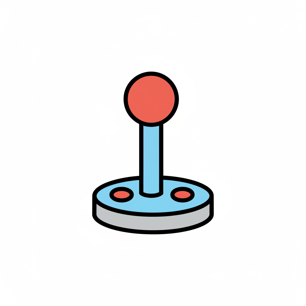 Bunter Joystick-Icon mit rotem Knauf und blauer Basis auf weißem Hintergrund.