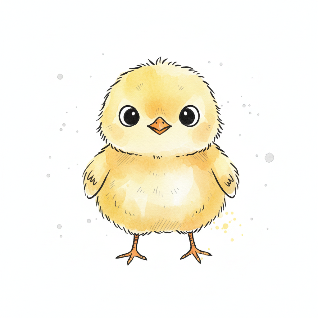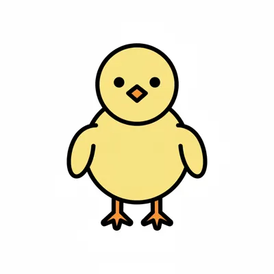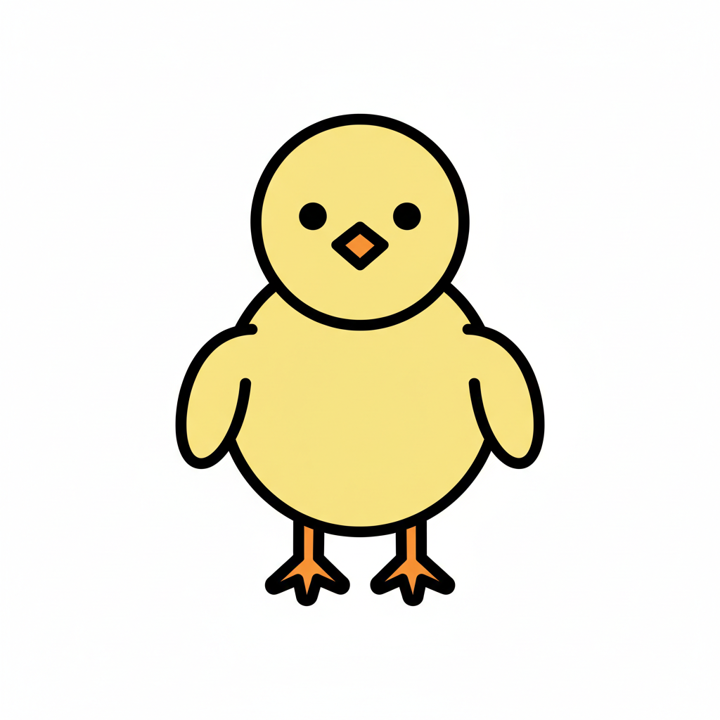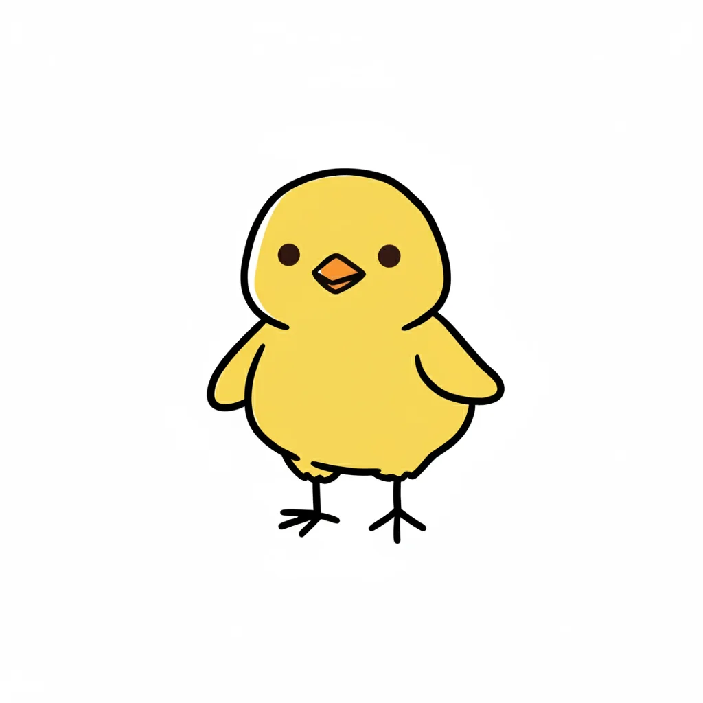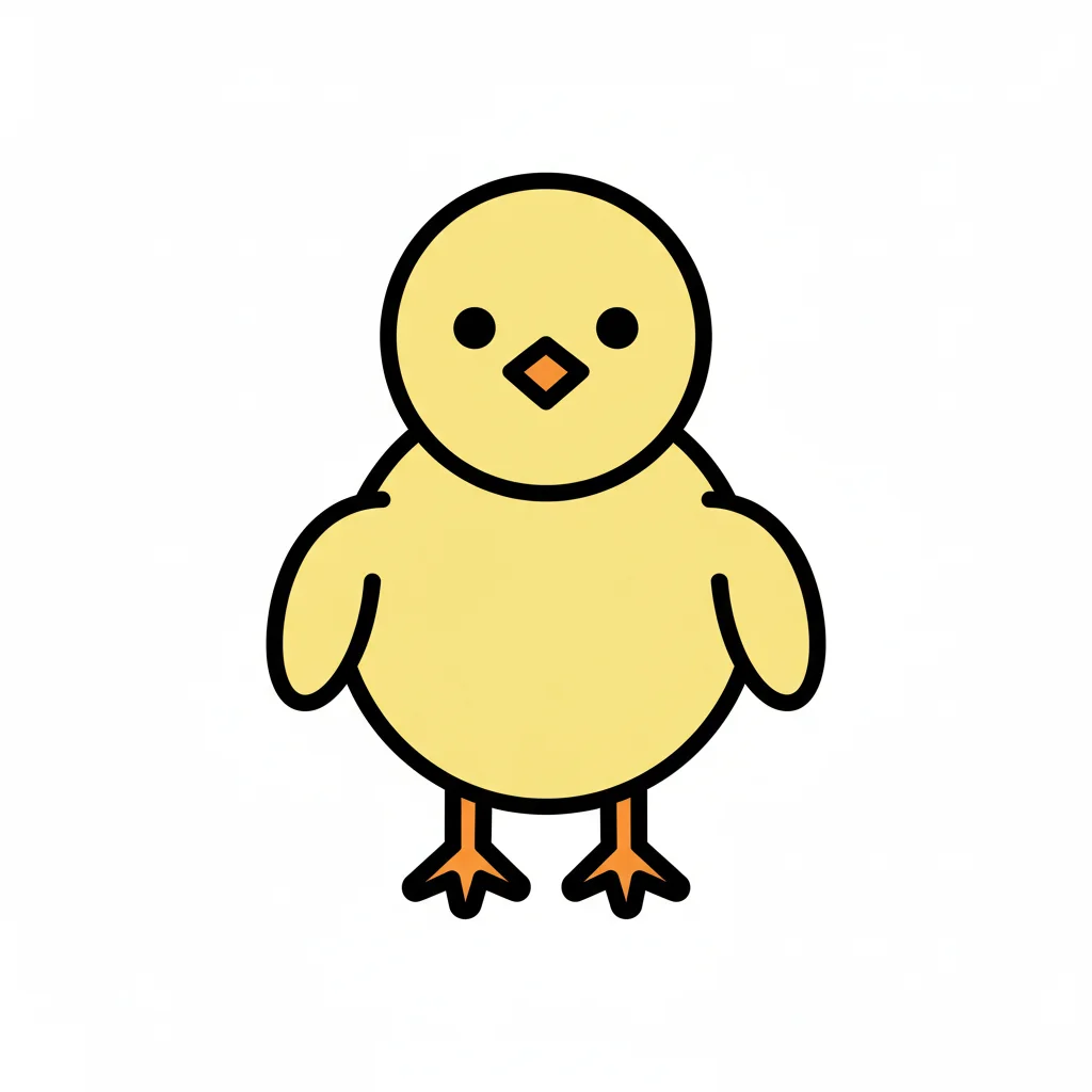 Ein süßes, gelbes Küken mit runden Formen und freundlichem Gesicht.