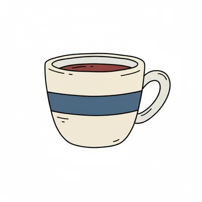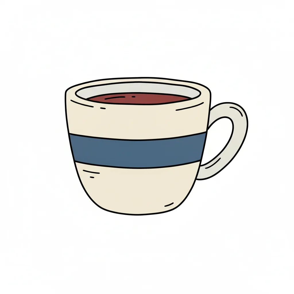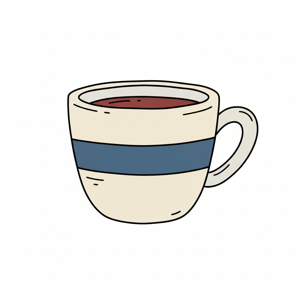 Eine stilisierte Tasse mit braunem Inhalt und blauer Linie.