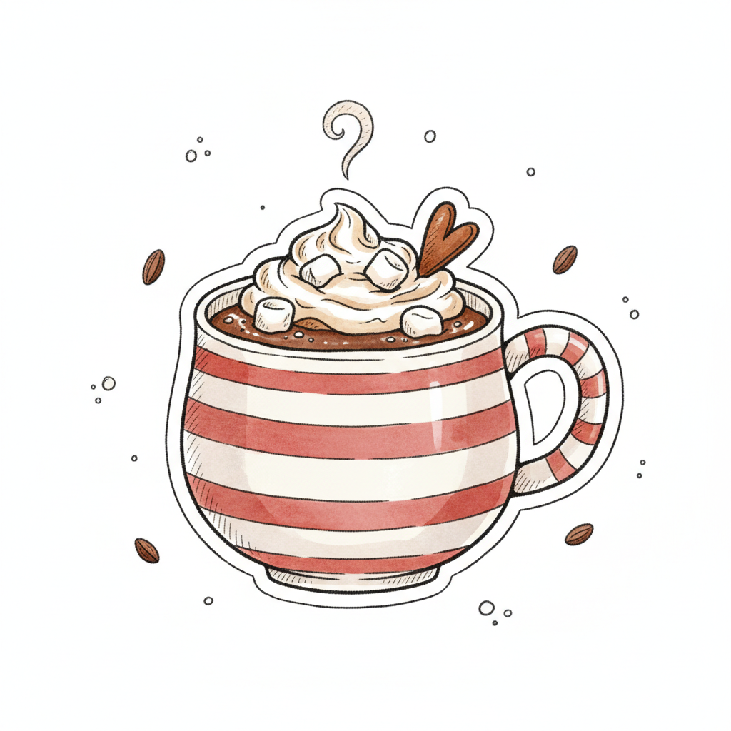Eine süße Tasse Kakao mit Sahne und Marshmallows.