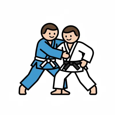 Zwei Judoka in blauen und weißen Gis beim Kampfkunst-Training oder Wettkampf.