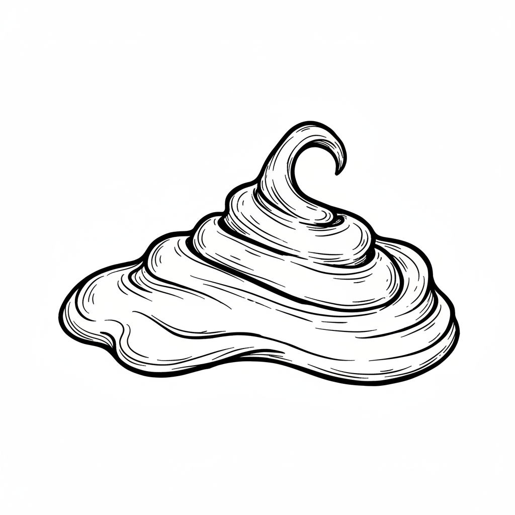 Schwarz-weiße Skizze eines Sahnehäufchens mit einer Spitze, handgezeichneter Stil.