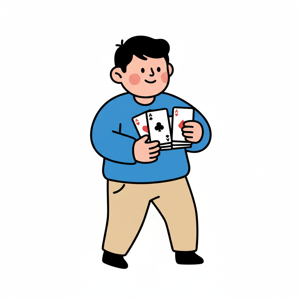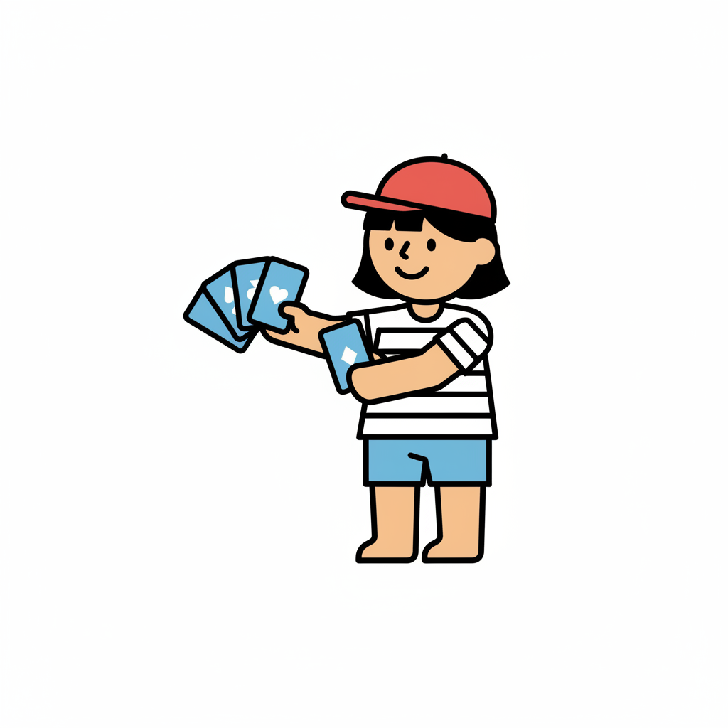 Ein Junge spielt mit Karten und zeigt seine Fähigkeiten.