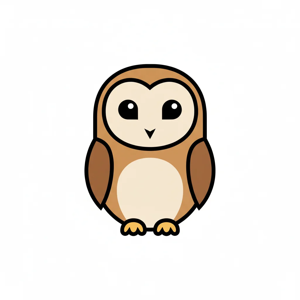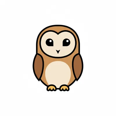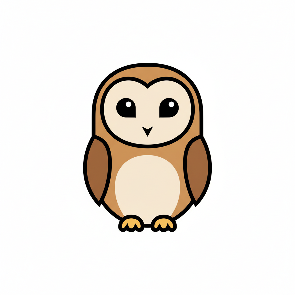 Cartoon-Eule mit großen Augen und braunem Gefieder.