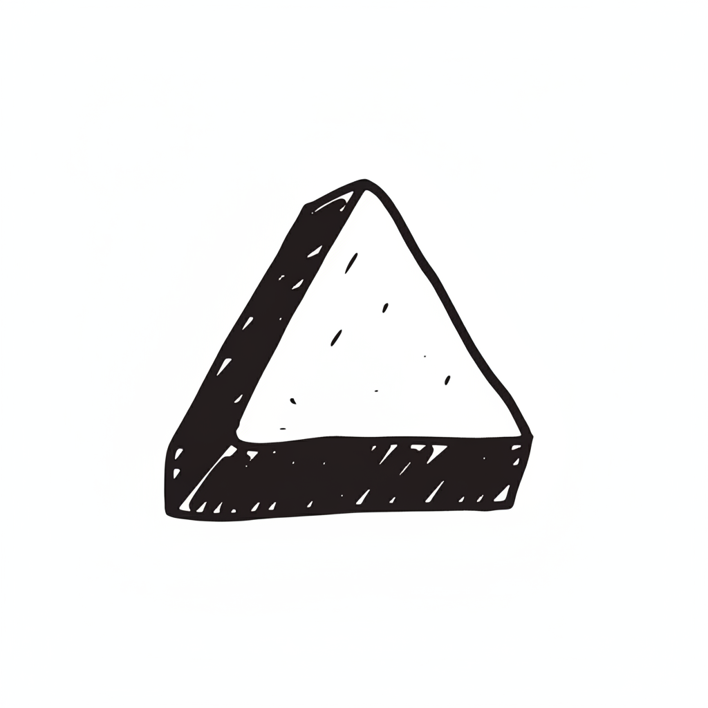 Handgezeichnetes, dreieckiges Objekt im Doodle-Stil mit dunklen Rändern und heller Fläche.