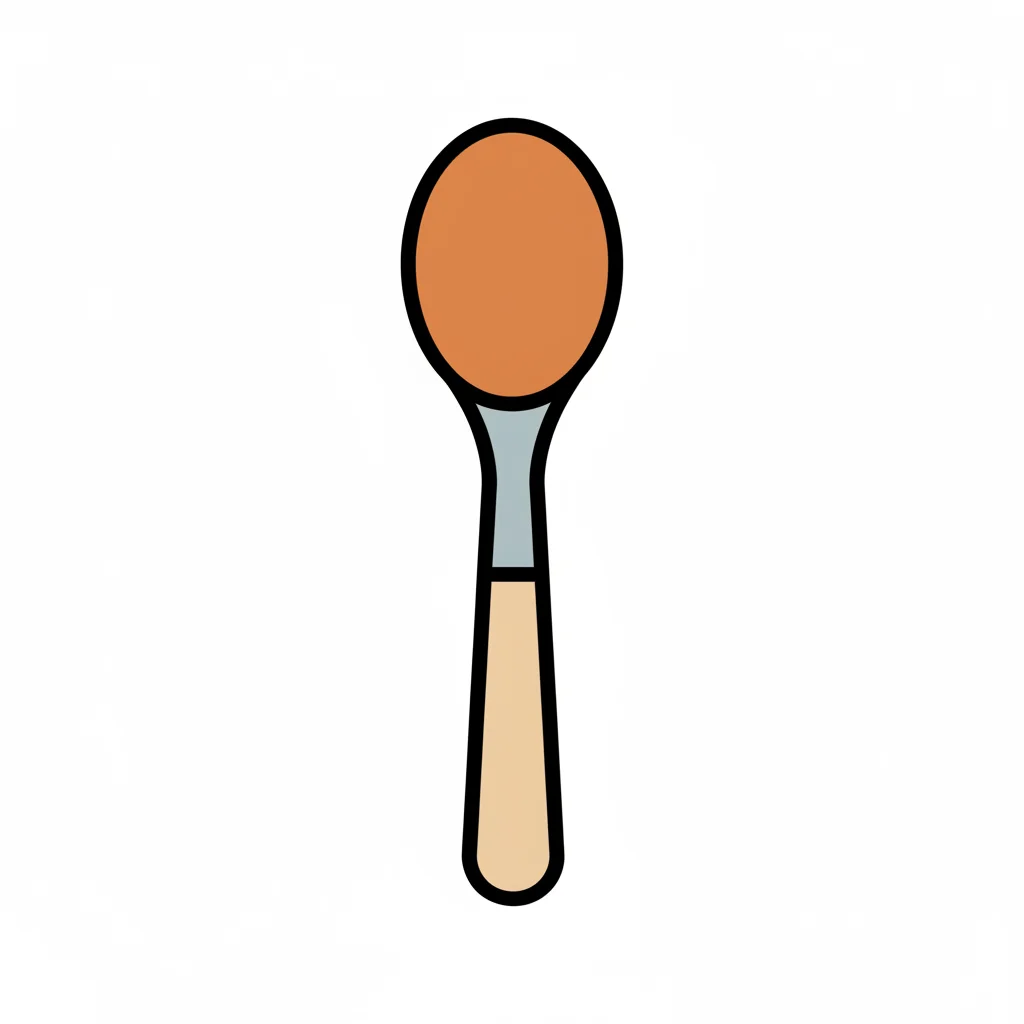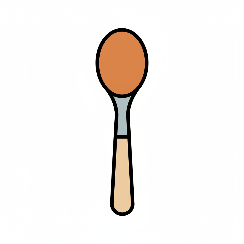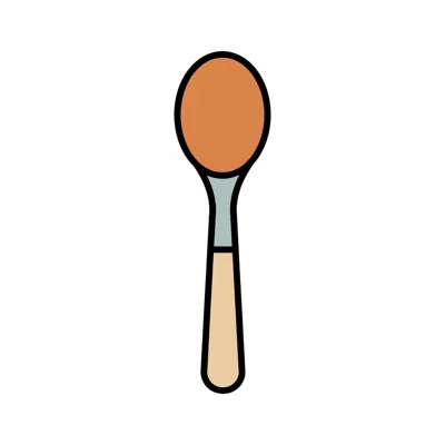 Eine illustrierte Kelle mit braunem Inhalt und hellem Griff.