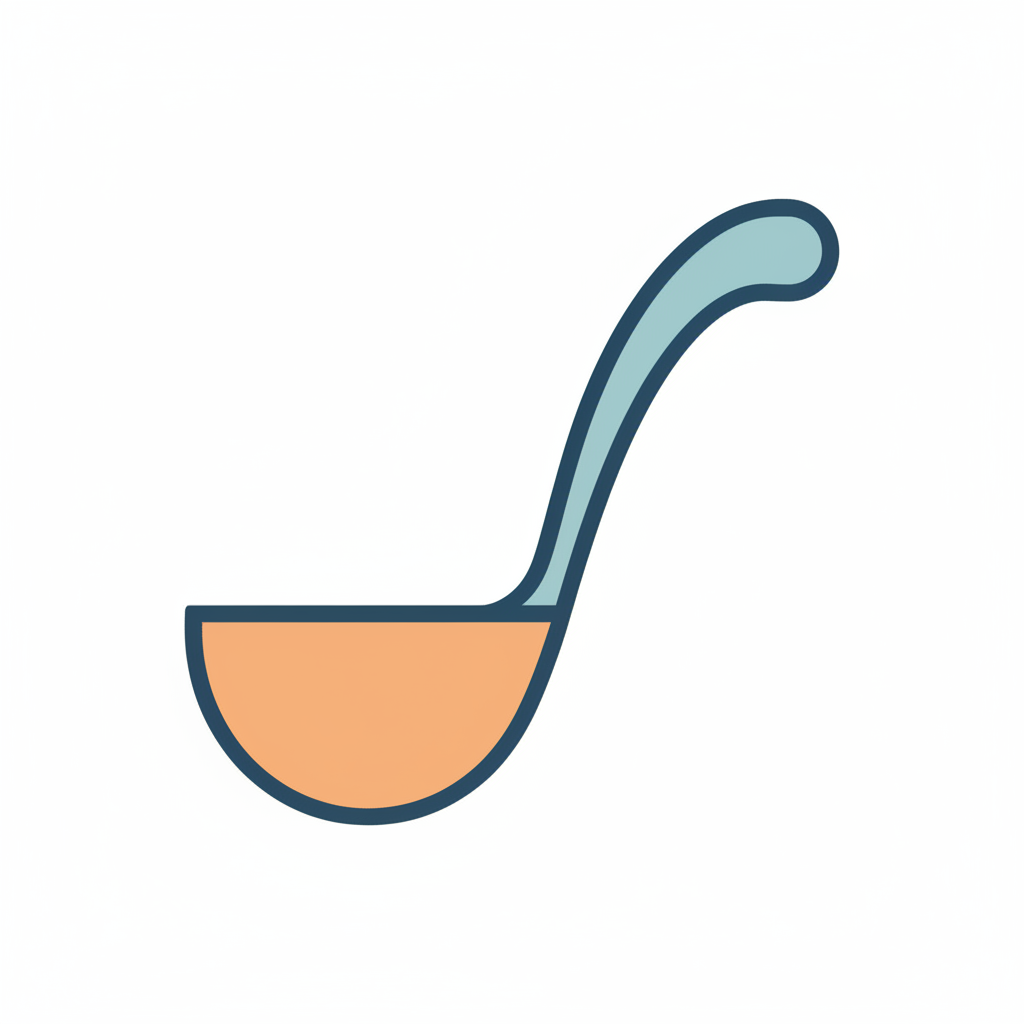Eine einfache, stilisierte Suppenkelle in hellen Farben.