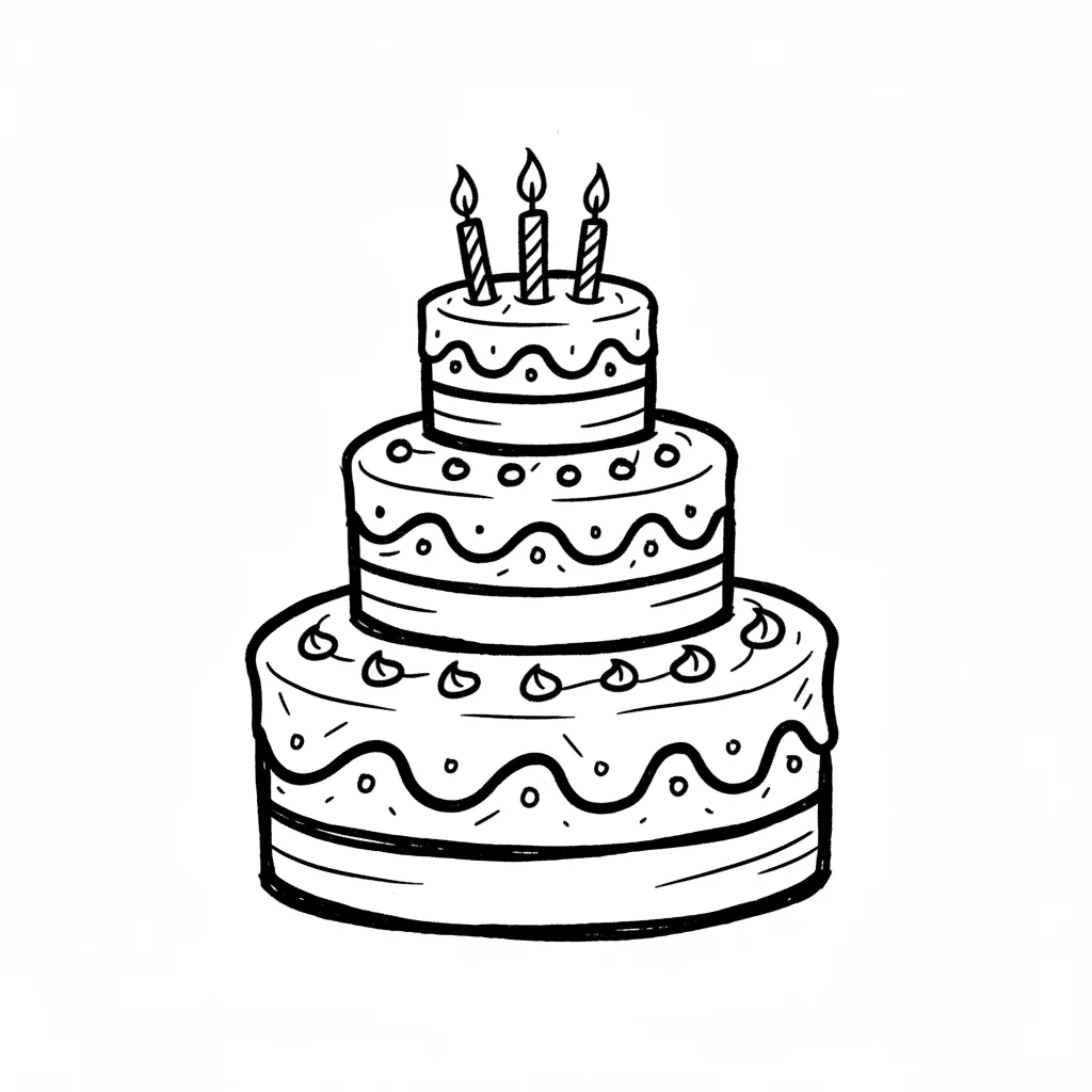 Ein dreistöckiger Geburtstagskuchen mit Kerzen.