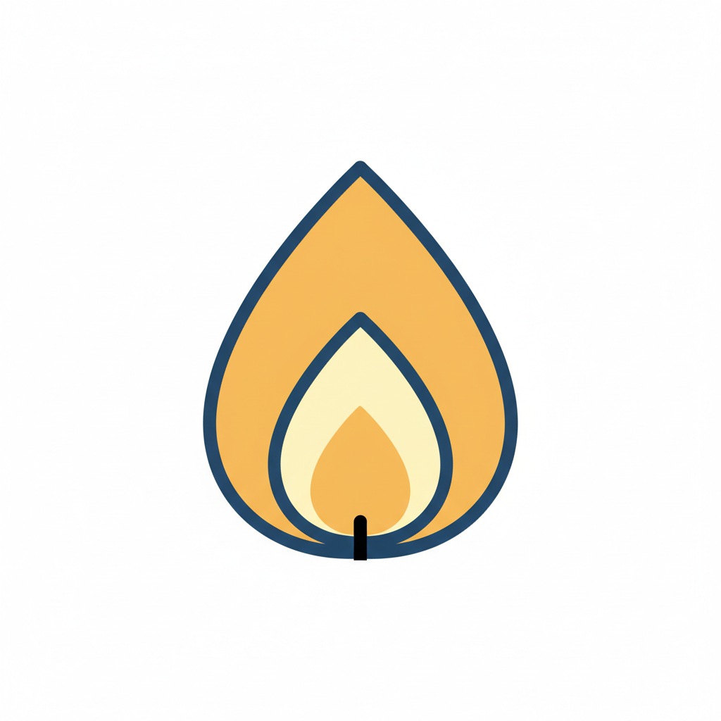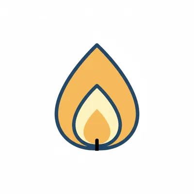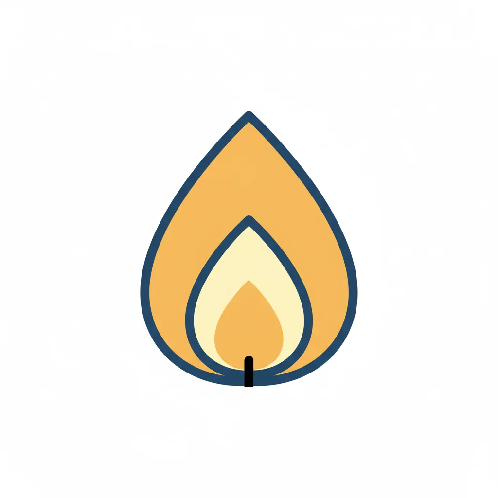 Stilisierte Flamme mit gelben Farbtönen und dunkler Umrandung auf weißem Hintergrund.