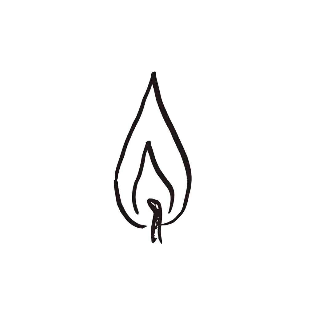 Eine einfache, handgezeichnete schwarze Flamme auf weißem Hintergrund.