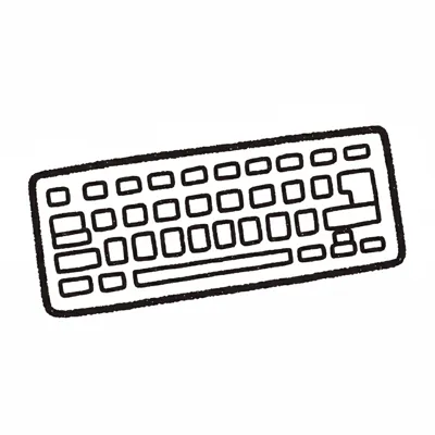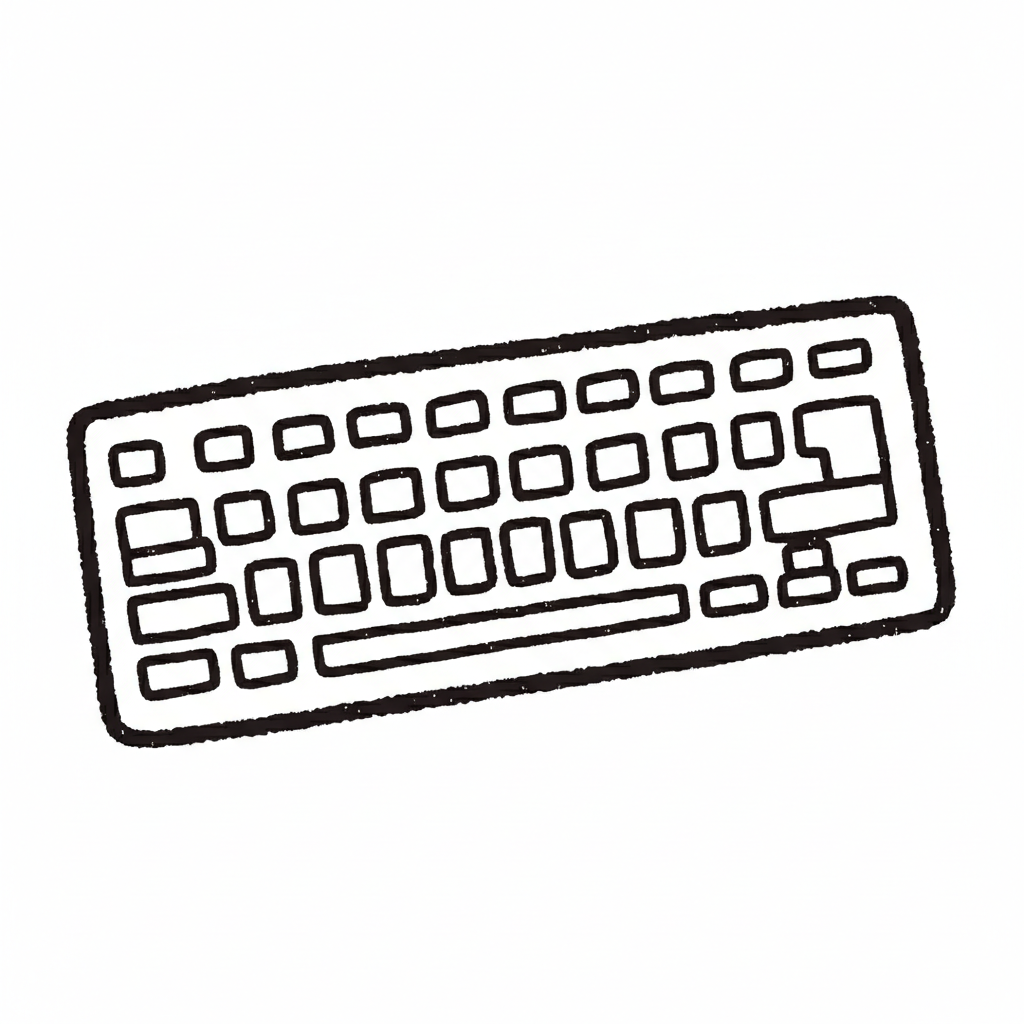 Eine einfache, handgezeichnete Skizze einer Computertastatur in Schwarz-Weiß.