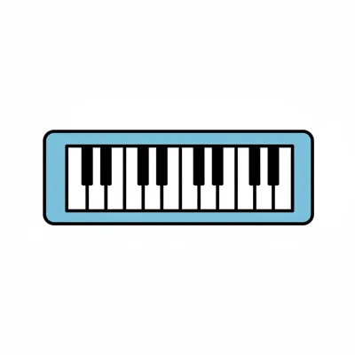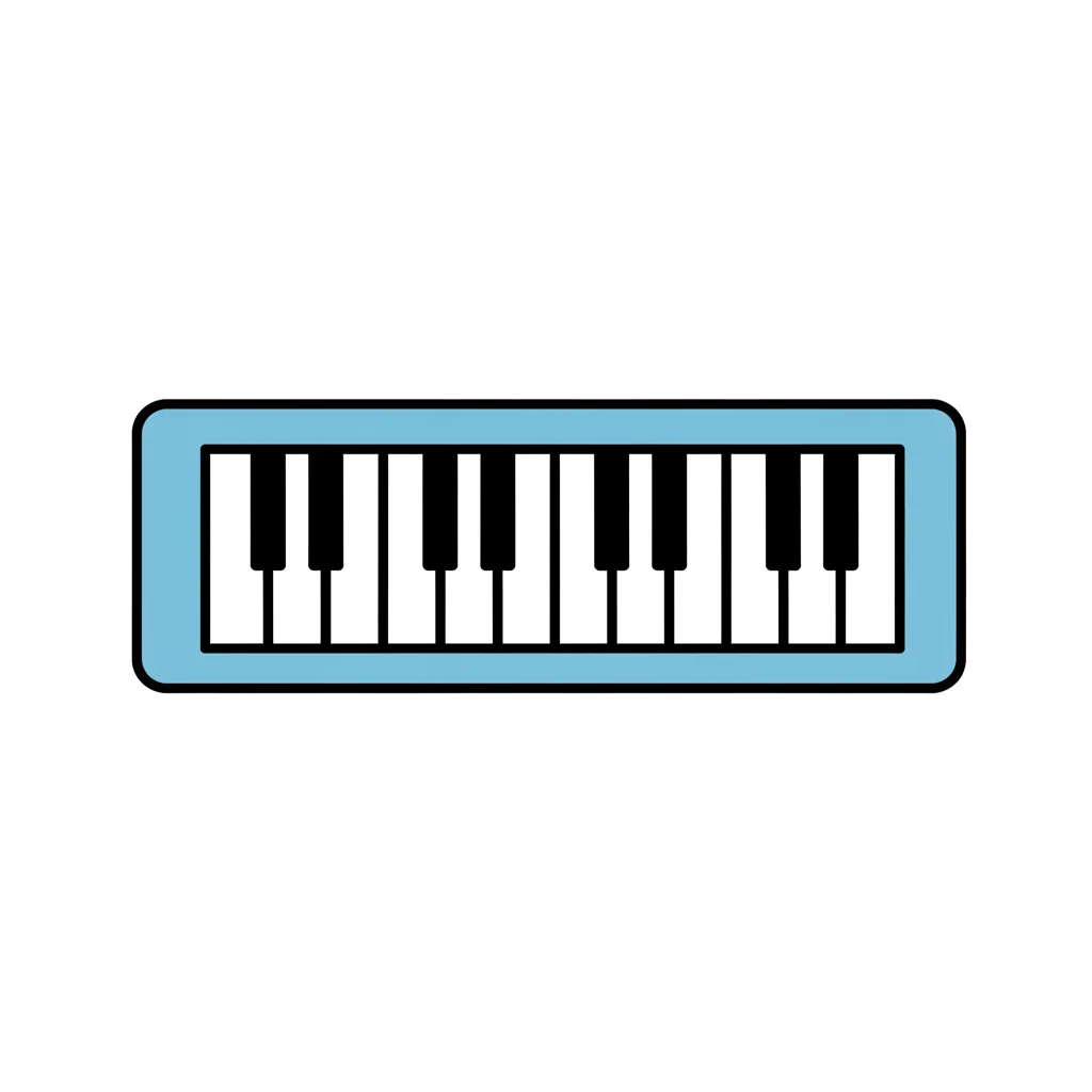 Einfache Illustration einer Klaviertastatur mit hellblauem Rahmen und schwarzen/weißen Tasten.