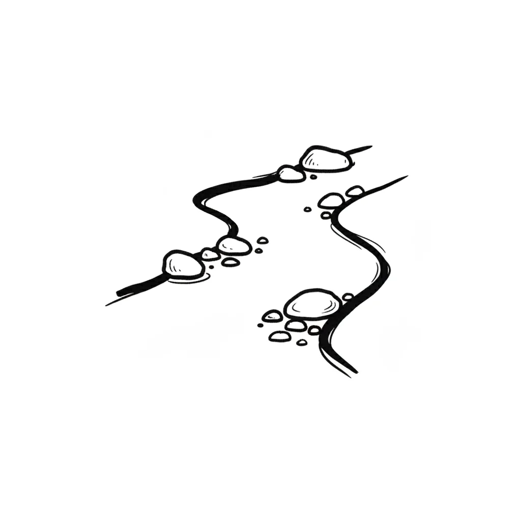 Handgezeichnete Skizze von zwei gewundenen Pfaden mit Trittsteinen oder Kieselsteinen.