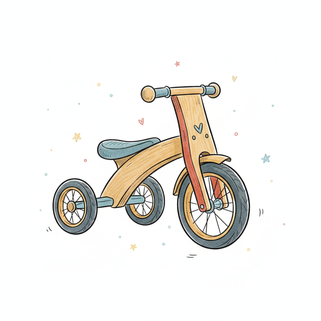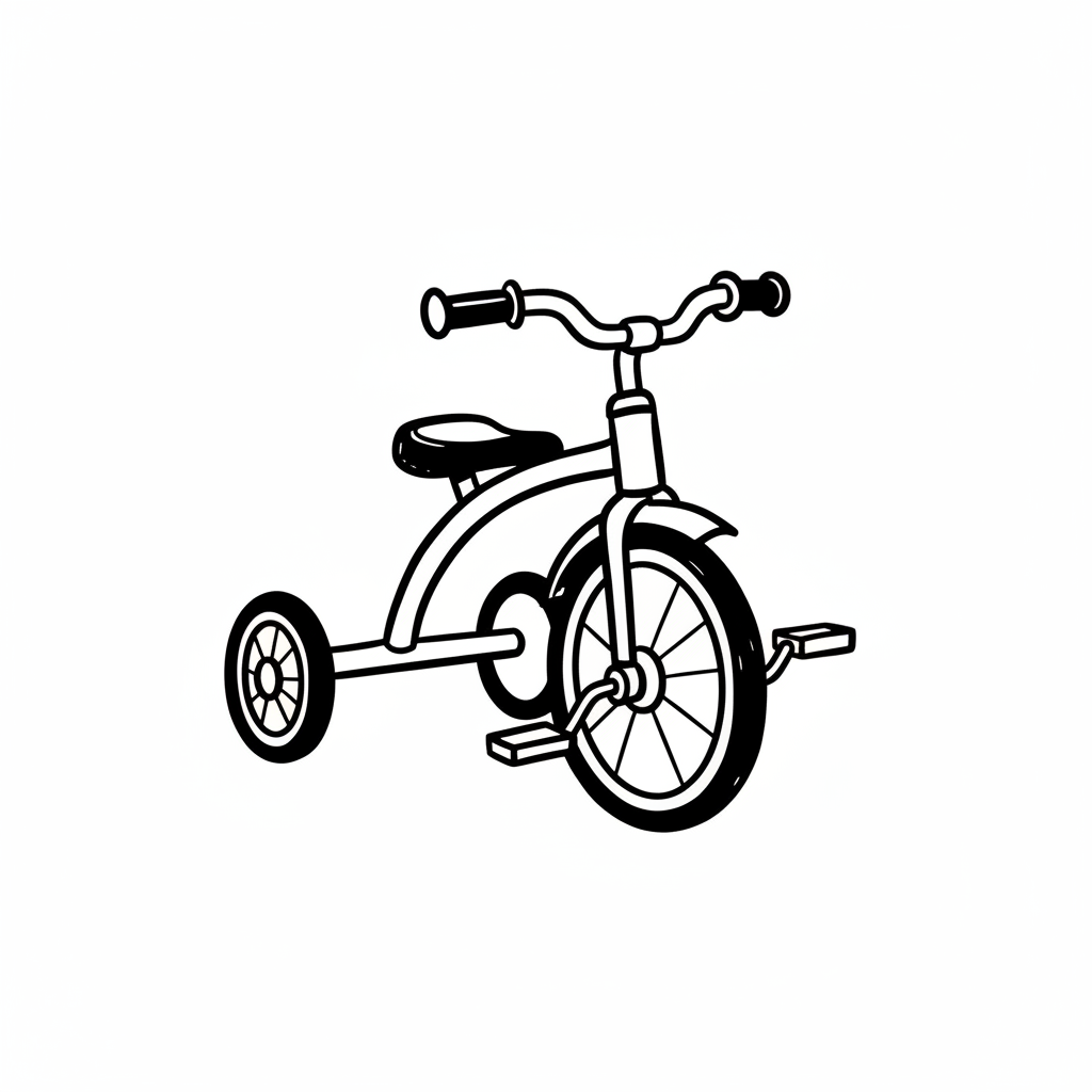 Ein einfaches, gestricheltes Bild eines Dreirads.