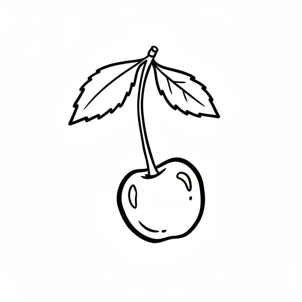 Eine einfache Zeichnung einer Kirsche mit Blatt.