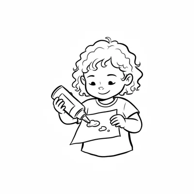 Ein Kind malt mit einer Flasche auf Papier.