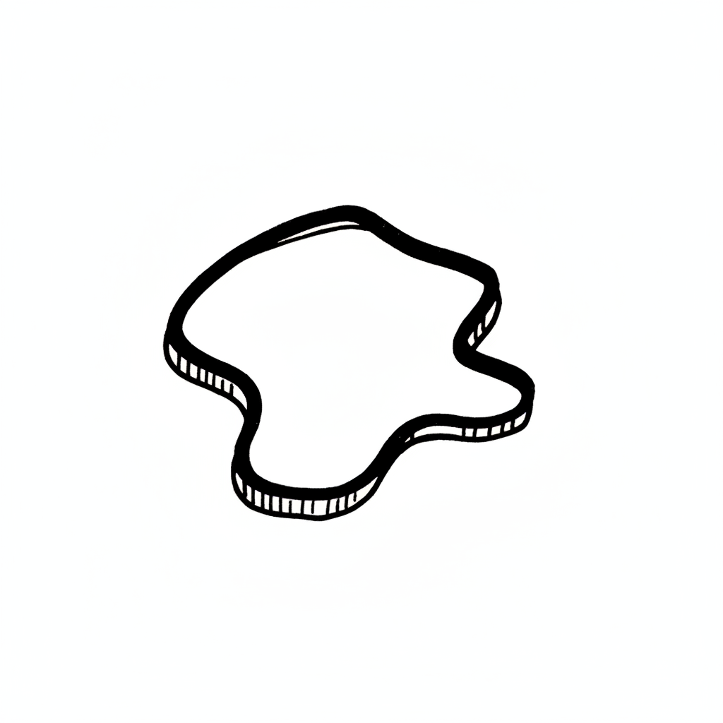 Schwarz-weiße, handgezeichnete Skizze einer unregelmäßigen, organischen Form mit Tiefenwirkung.