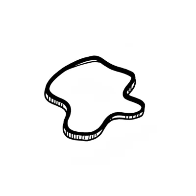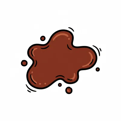 Brauner, cartoonartiger Klecks mit Spritzern auf weißem Grund.