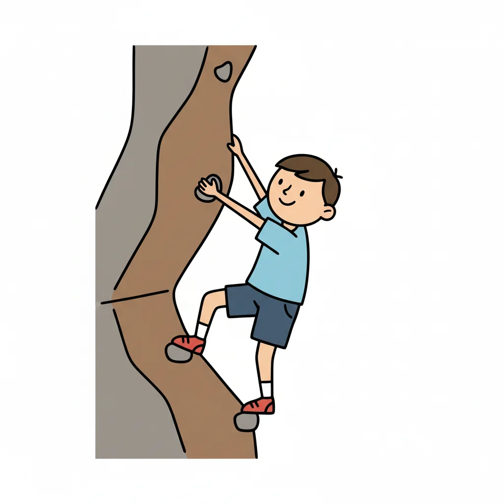 Ein Junge klettert an einer Wand und hat Spaß dabei.