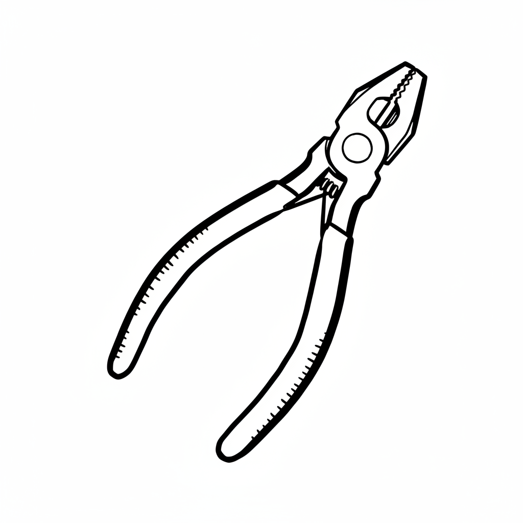 Schwarz-weiße Strichzeichnung einer Zange auf weißem Hintergrund.